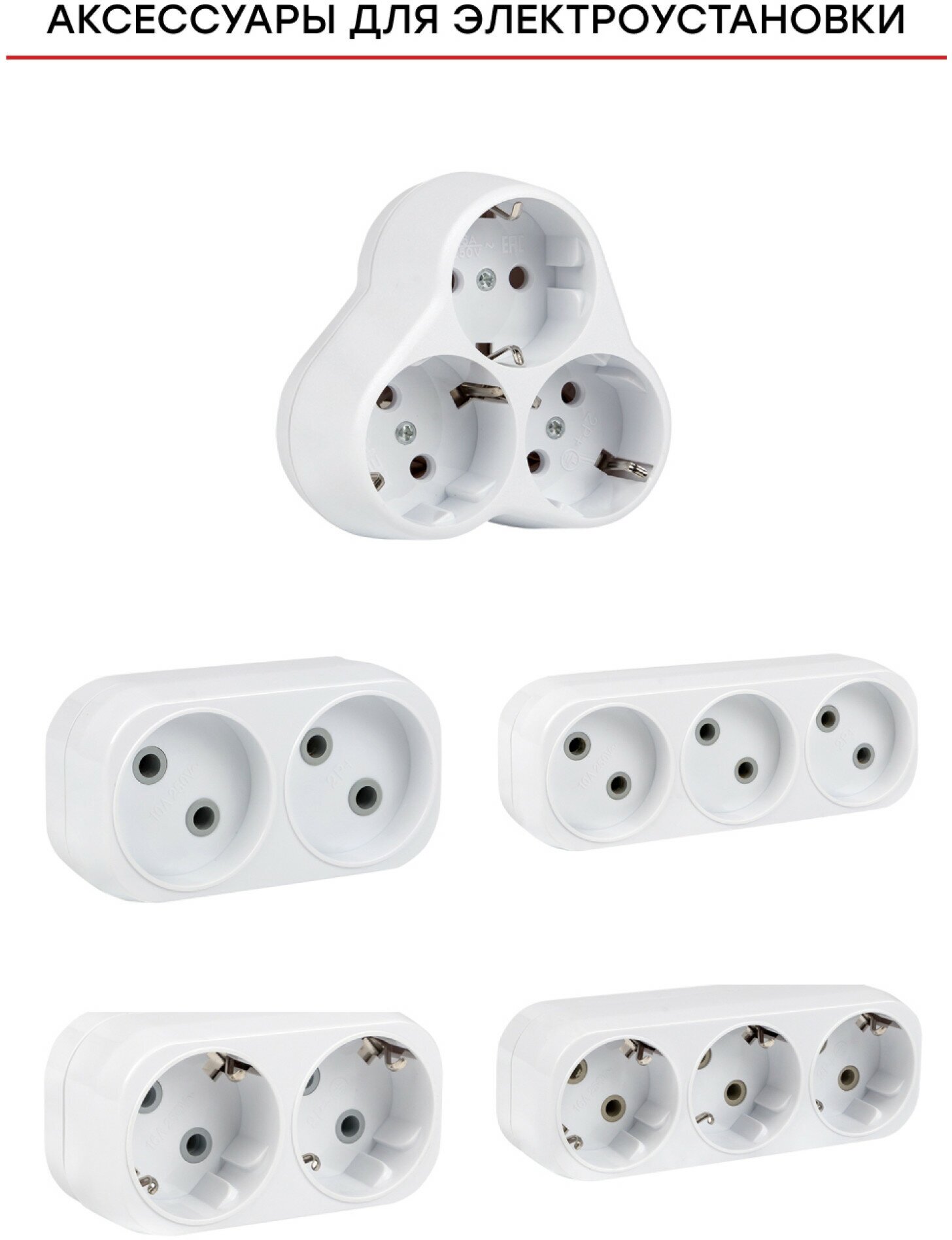 Широкий ассортимент аксессуаров EKF позволяет организовать электрическую сеть в полном соответствии с вашими потребностями. Подключение осветительного прибора, бытовой техники, сборка электрического удлинителя нестандартной длины, подключение нескольких потребителей электроэнергии к одной розетке – для всех этих операций найдется решение в широком модельном ряду EKF. Каждый аксессуар соответствует требованиям безопасности и ГОСТ, изготовлен из негорючих материалов, конструкция продумана для быстрого и удобного монтажа изделия.