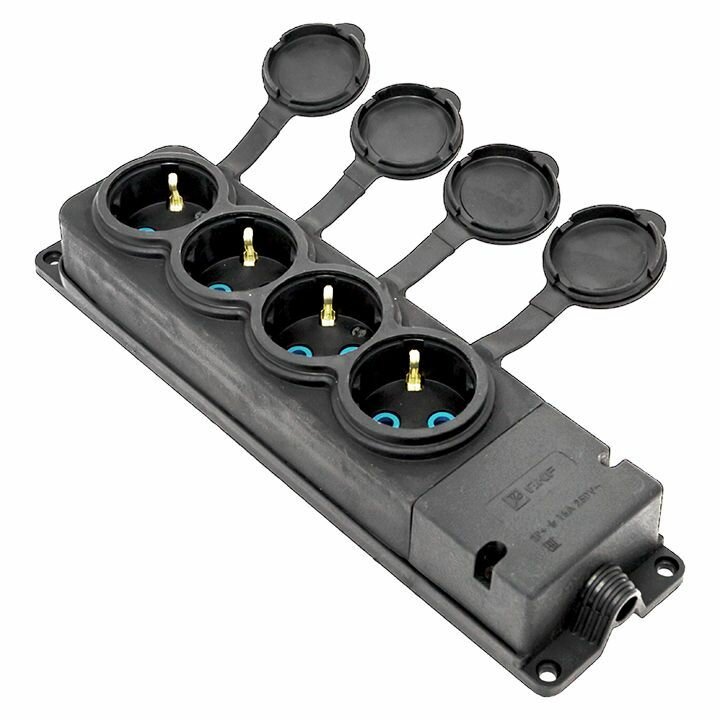 Роз. четырехмест. с защит. крышками каучуковая 230В 2P+PE 16A IP44 PRO EKF (RPS-020-16-230-44-r)