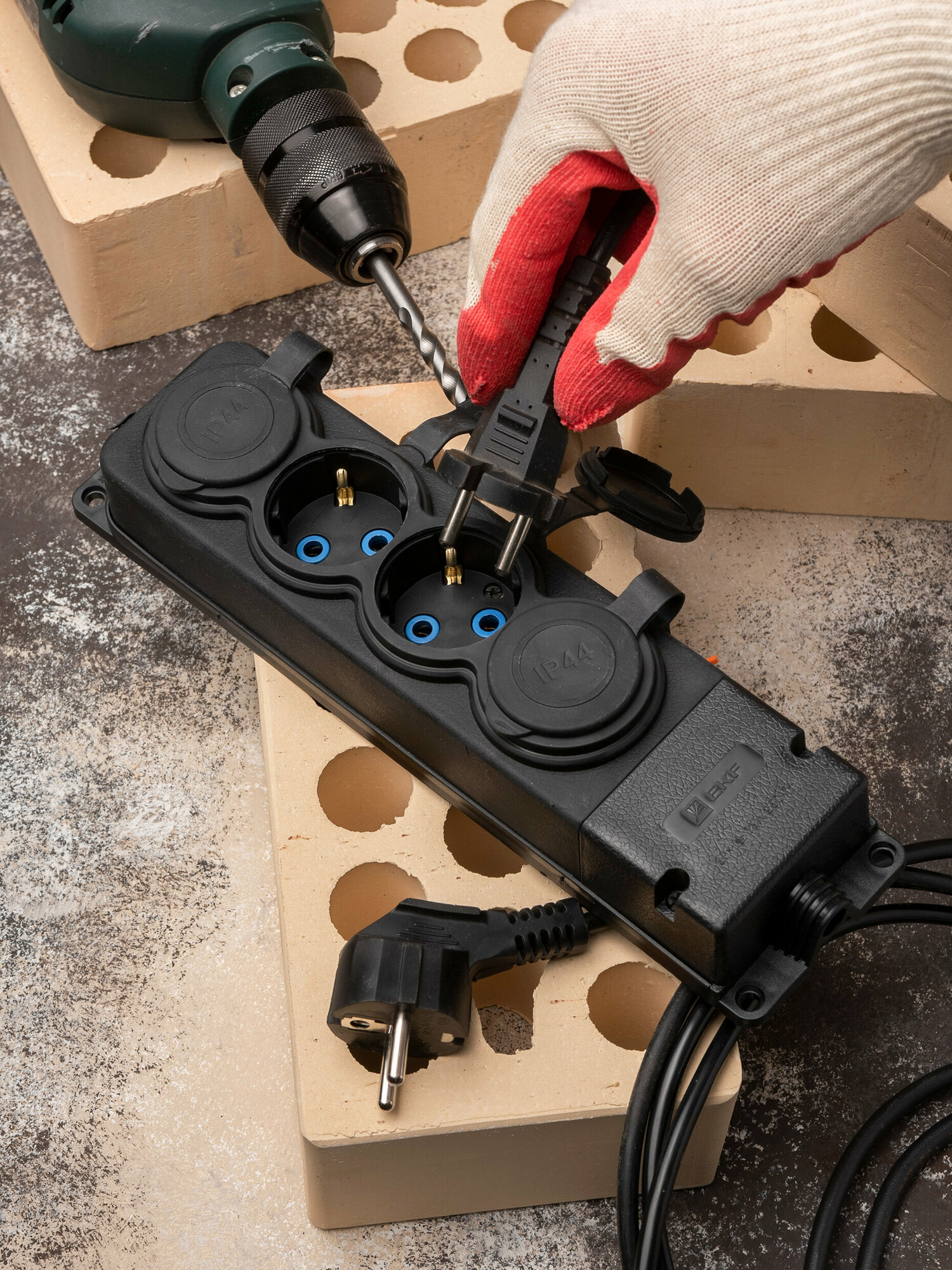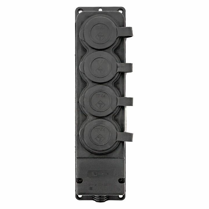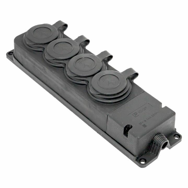 Четырехместная розетка (колодка) RPS-020 Proxima предназначена для создания точки подключения к электрической сети. Может применяться как в мобильном, так и в стационарном исполнении (крепление к вертикальной или горизонтальной поверхности). Позволяет подключать до четырех приборов одновременно с суммарным током потребления 16А к сети 230В / 50Гц. Колодка имеет кабельный ввод и каждое гнездо закрывается защитной крышкой, что позволяет обеспечить степень защиты IP44 даже в нерабочем положении. Колодка имеет усиленную контактную группу с дополнительной изоляцией, корпус из морозостойкого материала (-40°С...+55°С) и удобную продуманную конструкцию. Все это позволяет использовать RPS-020 на объектах повышенной ответственности и в особо тяжелых условиях. Соответствует стандарту Shuko. Применяется совместно с вилками RPS-011 и RPS-017 или другими вилками, соответствующими стандарту Schucko. ПРЕИМУЩЕСТВА. Корпус из каучука устойчив к ударам, стойко переносит мороз, не деформируется и не разрушается. Надежная латунная контактная группа. Специальный сальник для провода различного сечения. Защитные крышки предохраняют изделия от попадания влаги. Фиксация провода внутри розеточного блока дополнительной скобой. Рифленая поверхность не позволяет изделию выскальзывать из рук. ПРИМЕНЕНИЕ. Подключение потребителей на производстве. Организация электропитания мобильных объектов. Подключение потребителей электроэнергии на строительных площадках. Подключение бытового электроинструмента на садовых и приусадебных участках.