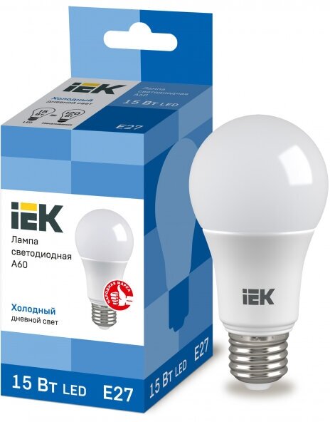 Лампа светодиодная груша IEK A60 E27 15W 6500K LLE-A60-15-230-65-E27