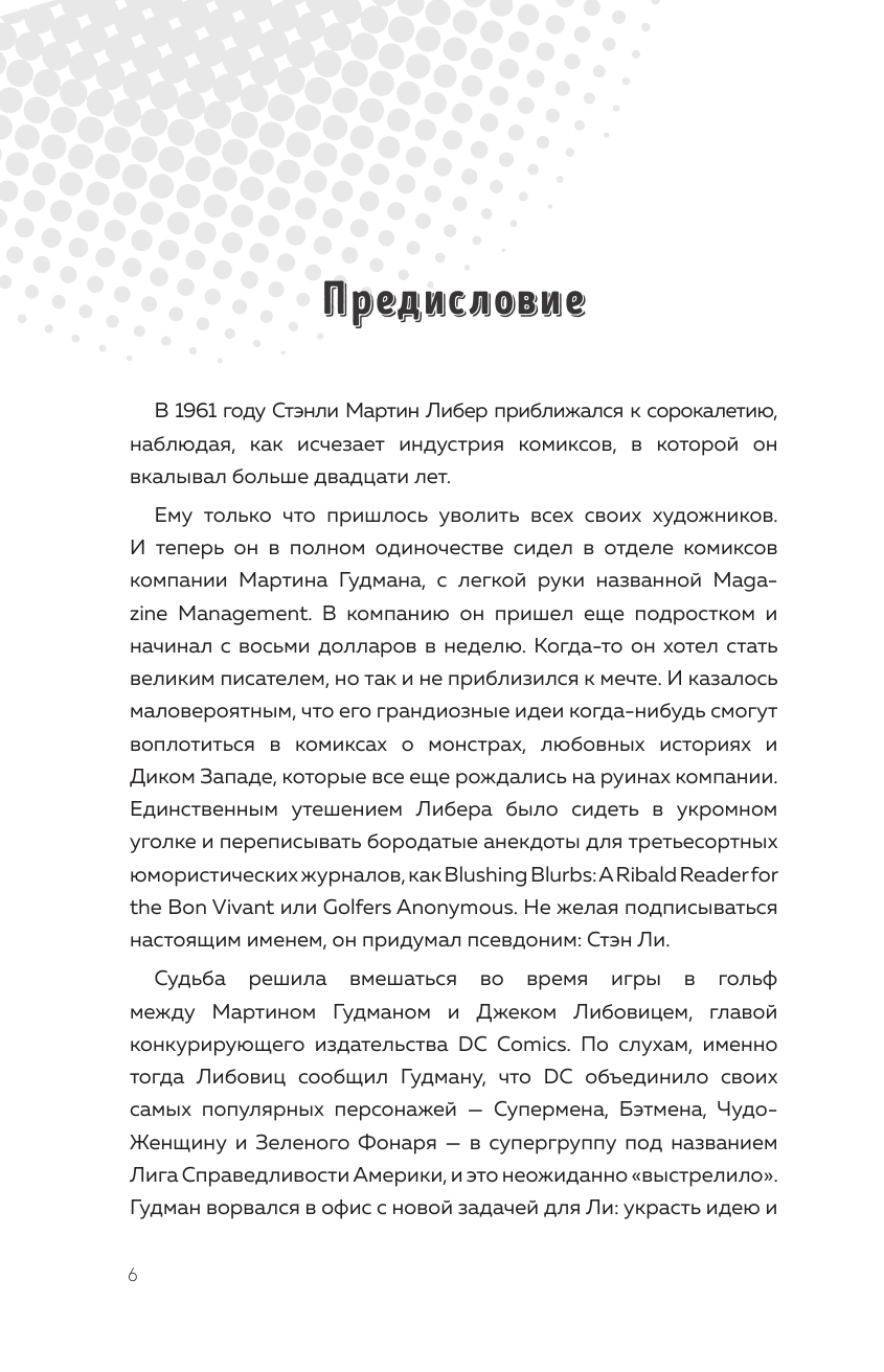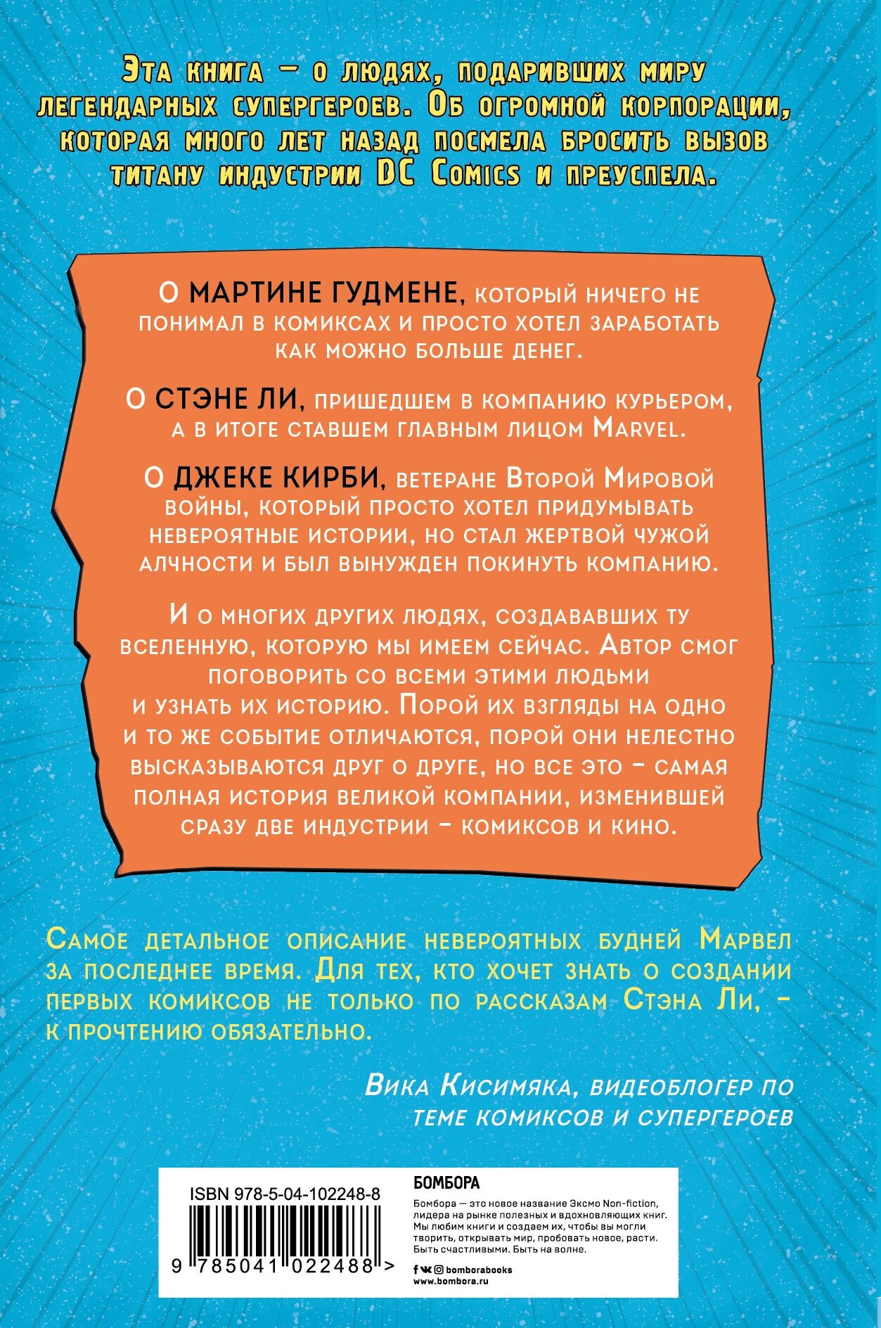 Эта книга - о людях, подаривших миру легендарных супергероев. Об огромной корпорации, которая много лет назад посмела бросить вызов титану индустрии DC Comics и преуспела. О Мартине Гудмене, который ничего не понимал в комиксах и просто хотел заработать как можно больше денег. О Стэне Ли, пришедшем в компанию курьером, а в итоге ставшем главным лицом Marvel. О Джеке Кирби, ветеране Второй Мировой войны, который просто хотел придумывать невероятные истории, но стал жертвой чужой алчности и был вынужден покинуть компанию. И о многих других людях, создававших ту вселенную, которую мы имеем сейчас. Автор смог поговорить со всеми этими людьми и узнать их историю. Порой их взгляды на одно и то же событие отличаются, порой они нелестно высказываются друг о друге, но все это - самая полная история великой компании, изменившей сразу две индустрии - комиксов и кино.