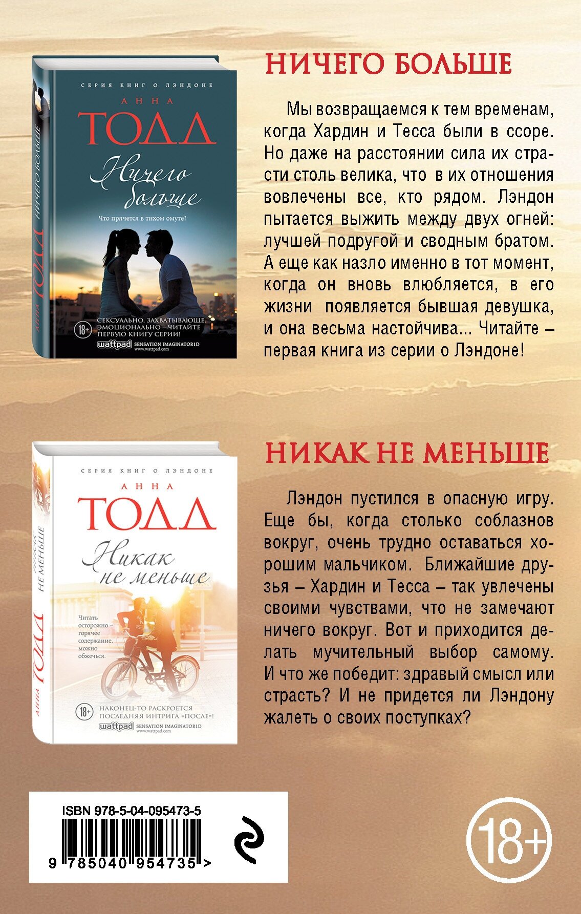 книга 18+. детям младше точно читать не рекомендую. на обложке книги написано "наконец-то раскроется последняя интрига "После"!". В целом этим и пронизаны обе книги про Лендона: интригу держали до последней главы. но действительно немного раскрывает события серии "После". скажу откровенно: книга менее интересна, нежели серия "После". но тоже неплохая. о любви, дружбе, разбитых мечтах и снова о любви.