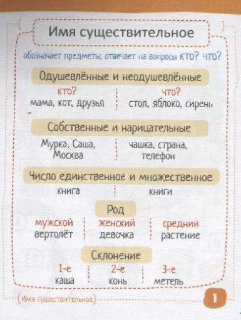 .Наглядно представленные правила помогут научиться грамотно писать в существительных мягкий знак после шипящих, безударные падежные окончания, а также безошибочно определять род, число и склонение существительных.
