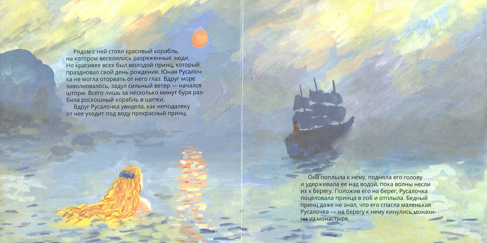 Новая серия издательства VoiceBook- любимые сказки, проиллюстрированные в манере письма известных художников. Нежная сказка о влюбленной русалочке в новом издании – это легкая дымка грусти и туманные просторы волн в манере великого импрессиониста Клода Моне.