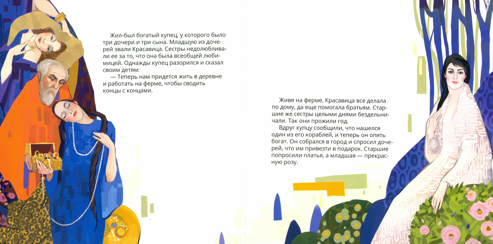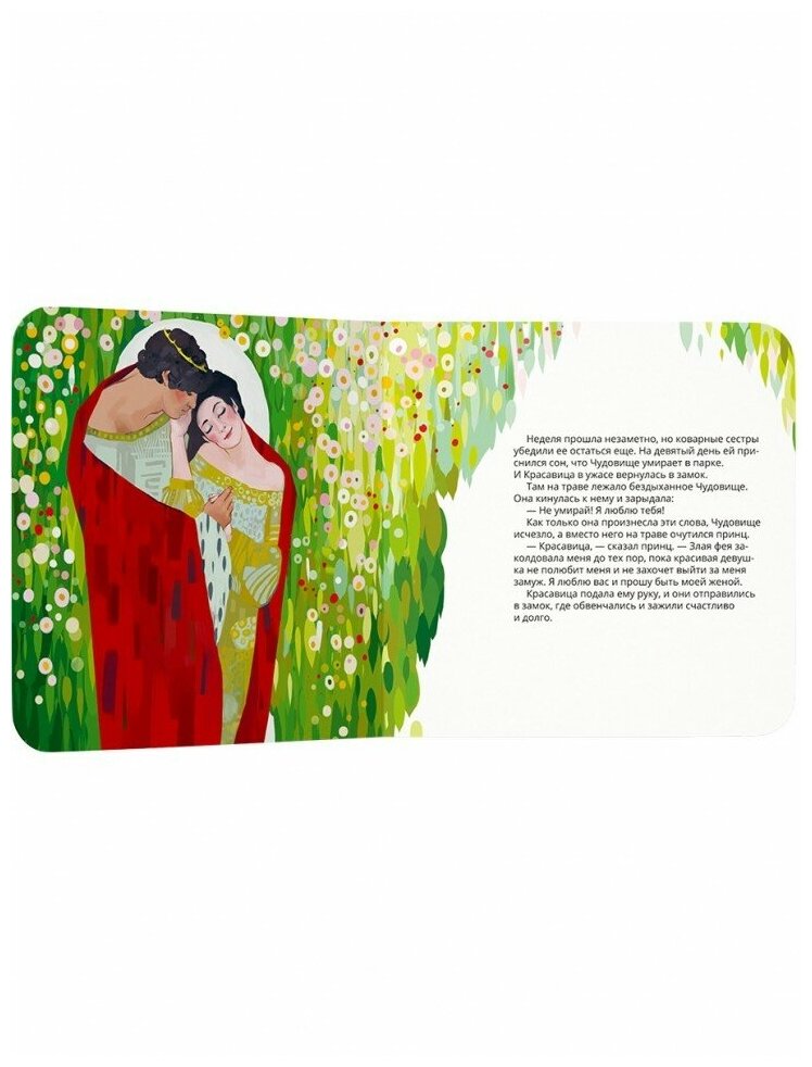 Проникновенные, облитые золотом образы героев и изысканные орнаменты, привычные для мастера модерна Климта, послужили великолепной декорацией, на фоно которой разворачивается история любви девушки и заколдованного принца, а заодно знакомят ребенка с еще одним направлением живописи.