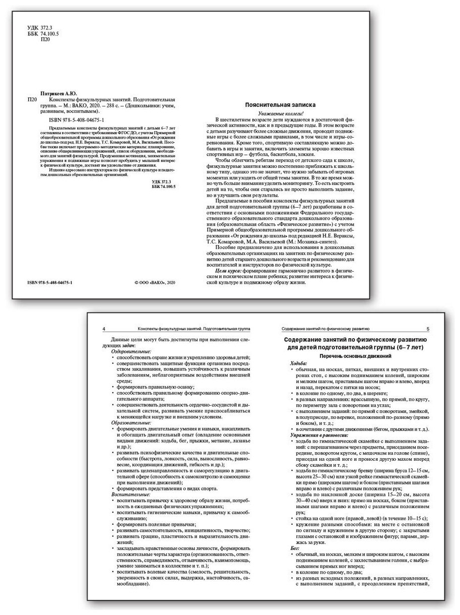 Конспекты физкультурных занятий. Подготовительная группа (Патрикеев Артем Юрьевич); Вако, 2019