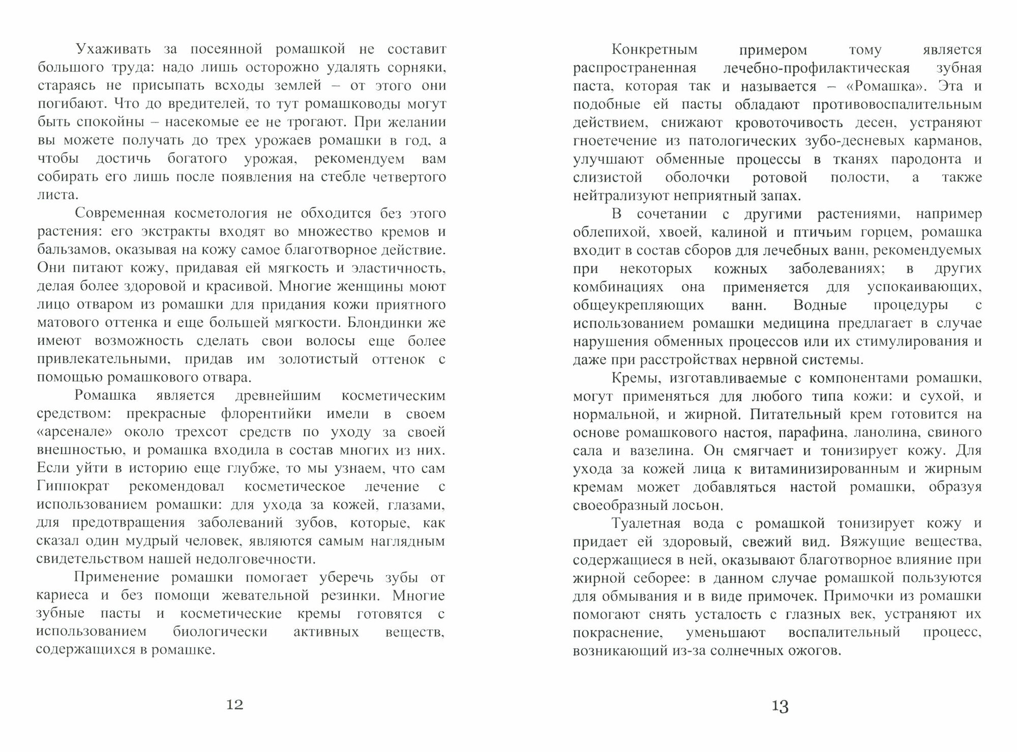 Символ мира и дружбы, цветок влюбленных, солнце на краю дороги... - это все о ней, о ромашке. Внешне простая, ромашка находит применение и в быту, и в косметике, и в медицине. Еще Гиппократ рекомендовал ее для ухода за кожей лица и тела, волосами и даже полостью рта. Современная медицина значительно расширила сферу применения ромашки. И если Вы страдаете заболеванием дыхательной или сердечно-сосудистой системы, если вас мучает аллергия или мигрень, если вы обожглись или обморозились, или же вам просто хотелось бы омолодить организм, усилив его регенеративные функции, - книга "Целительная ромашка" - это как раз то, что вам нужно. В ней вы найдете массу простых и доступных рецептов, которые, безусловно, вам помогут.