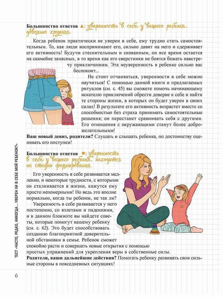 Купила на сайте книгу "Мой маленький блокнот. Развиваем уверенность в себе", качеством книги довольна, но когда делала заказ, считала, что книгу покупаю для дочки подростка. Книга написана для родителей, конечно если прочитать и потом объяснить ребёнку простыми словами суть книги, то будет интересна даже детям.. Хотелось бы, чтобы книги подобного плана были больше написаны для детей, а не для родителей.. Если бы в книге было бы больше игровых тестов было бы интереснее, а так я бы поставила 4+
