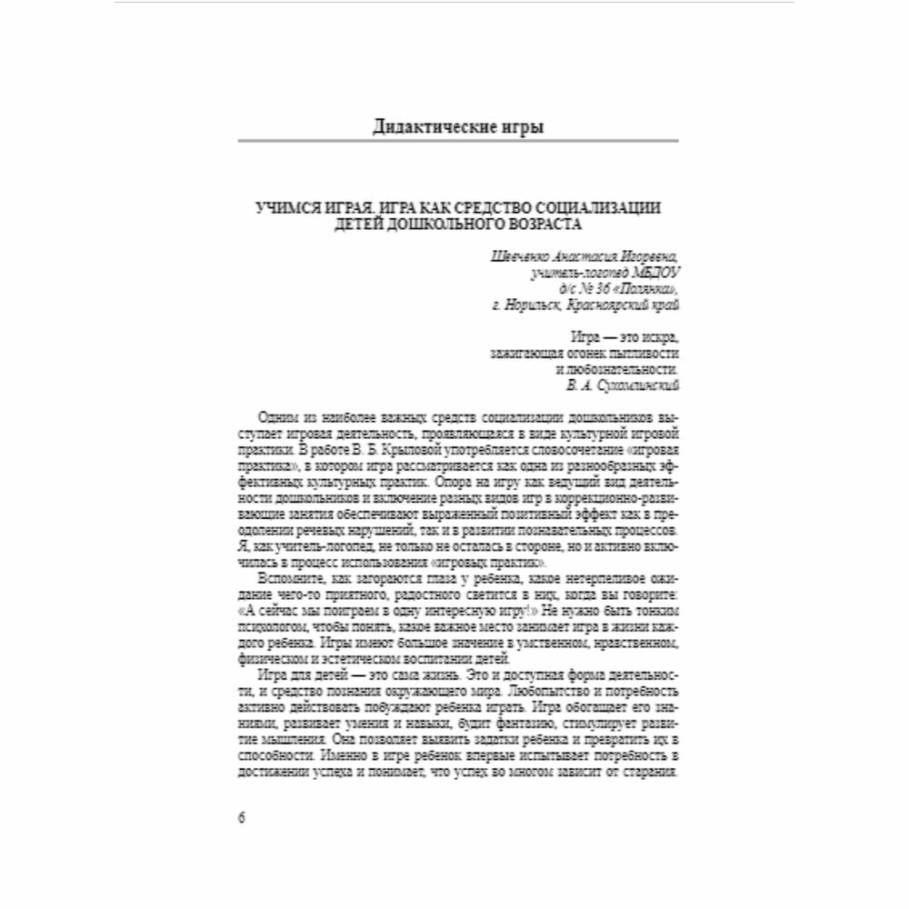 В сборнике представлены дидактические, театрализованные, сюжетно-ролевые и подвижные игры для детей дошкольного возраста, разработанные педагогами ДОУ разных регионов России и присланные на конкурс "Раз, два, три, четыре, пять. Начинаем мы играть" журнала "Дошкольная педагогика". Рекомендовано педагогам ДОУ и детских развивающих центров.