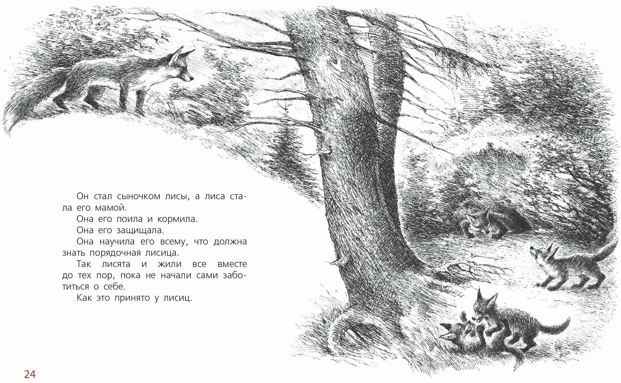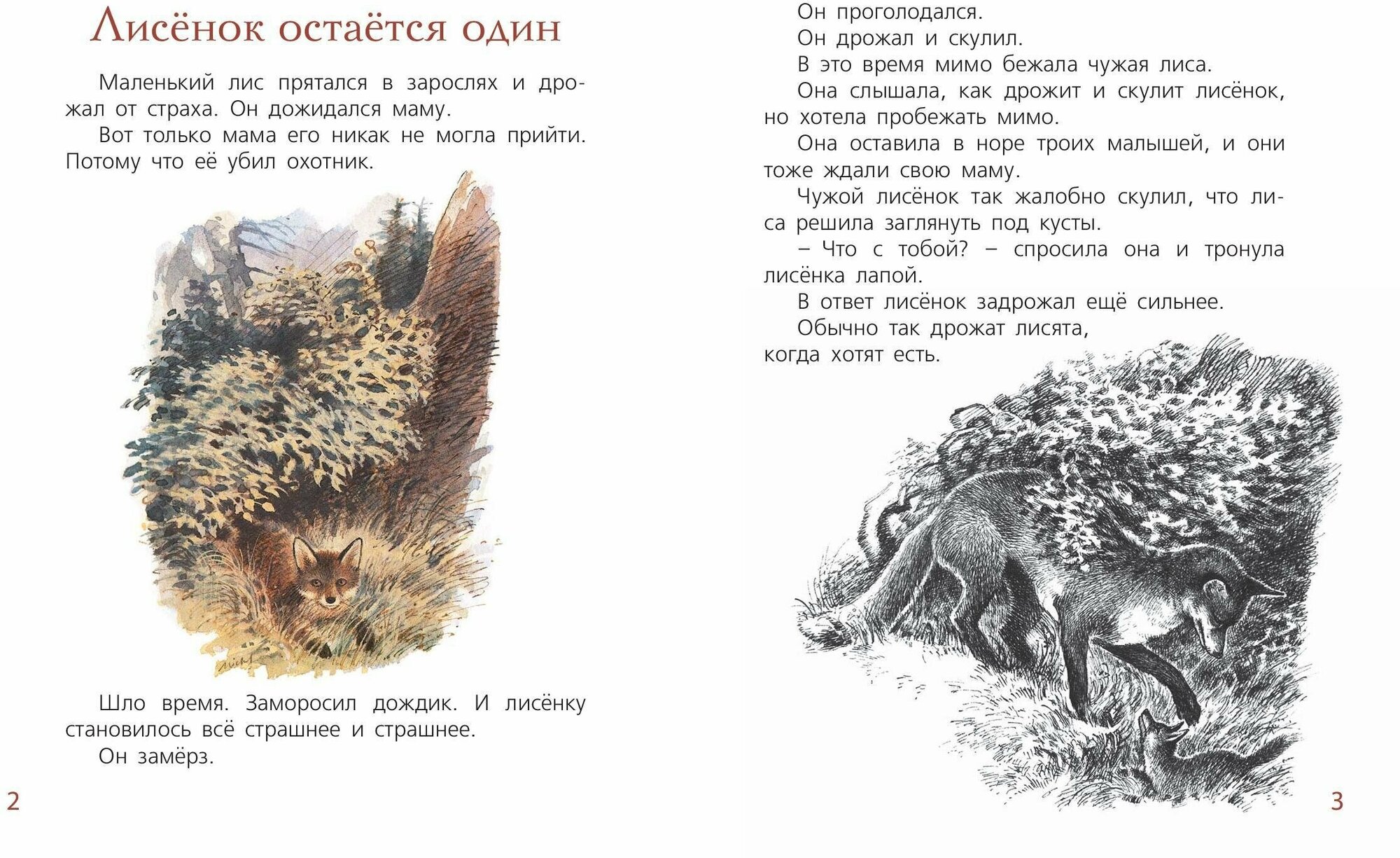 Пробегала по лесу лисица и услышала, как под кустом плачет чужой лисёнок. Рыжая плутовка торопилась, потому что дома её ждали трое своих малышей, но чужой лисёнок плакал так жалобно...