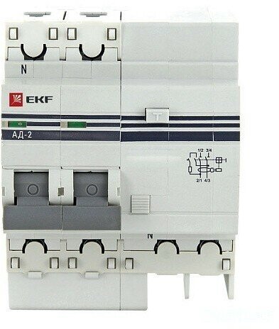 Дифференциальный автоматический выключатель EKF PROxima АД-2 S 63А, С, 100мА, тип AC, защита 270В, 4,5кА предназначен для защиты людей от поражения электрическим током при случайном прикосновении к открытым проводящим частям электроустановки, защиты электроустановки (ЭУ) при повреждении изоляции проводников и неисправностях ЭУ, предотвращения возгораний и пожаров, возникающих вследствие протекания токов утечки и развивающихся из них коротких замыканий, замыканий на корпус и замыканий на землю, автоматического отключения участка электрической сети при перегрузках и токах короткого замыкания. Применяется в электрических цепях переменного тока номинального напряжения 230В/400В и частотой 50 Гц бытового и промышленного назначения. АД 32S (селективный) специально предназначен для выдержки заранее установленного значения предельного времени неотключения, при протекании дифференциального тока.