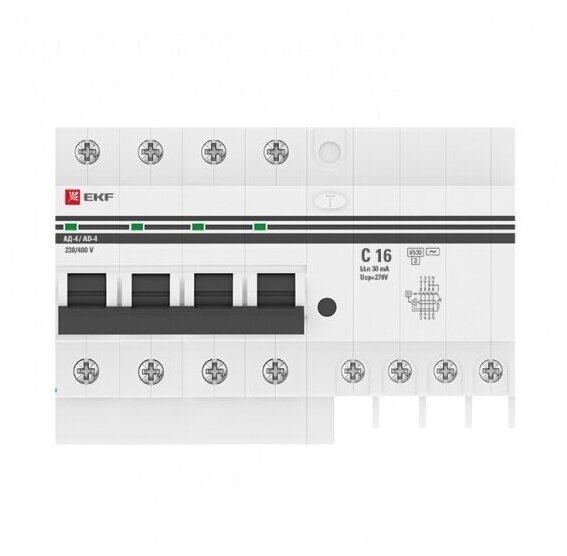 Дифференциальный автоматический выключатель АД-2(4) (S) EKF PROxima представляет собой аппарат, сочетающий функции автоматического выключателя с устройством защитного отключения. При обнаружении автоматическим выключателем в защищаемом участке сети тока утечки (повреждения) на землю или сверхтока (тока перегрузки или короткого замыкания) происходит срабатывание устройства, приводящее к отключению защищаемой сети. Особое отличие дифференциальных автоматов EKF - в наличии встроенного блока защиты от перенапряжения. АД-2 и АД-4 EKF PROxima выпускаются в стандартном и селективном (АД-2S, АД-4S) исполнениях.