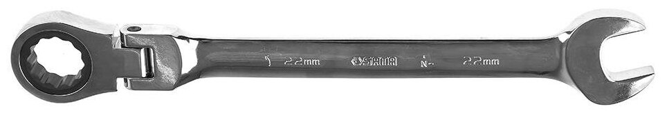 | Прочие особенности и свойства | Ключ комби. (метр.; храп./мех.; шарнир./своб.) 22мм. Ключ комбинированный метрический с трещоточным механизмом, с шарнирным наконечником. Двуконечный рожковый накидной храповый комбинированный ключ с шарнирным наконечником. Функцией шарнирной трещотки оснащен храповый накидной наконечник. Свободный шарнирный накидной наконечник отклоняется на любой угол в пределах интервала 180°, что не возможно для обычной трещотки. |