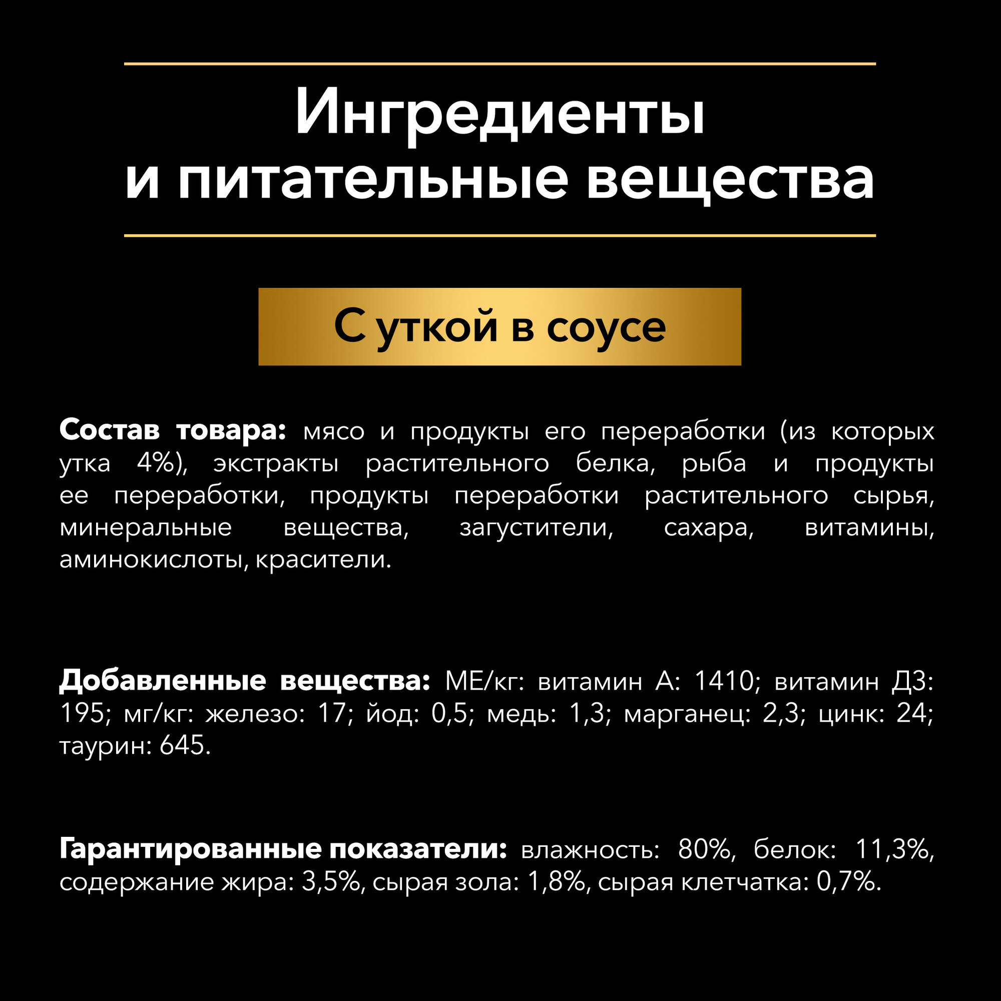 Состав: мясо и продукты его переработки (из которых утка 4%), экстракты растительного белка, рыба и продукты ее переработки, продукты переработки растительного сырья, минеральные вещества, загустители, сахара, витамины, аминокислоты, красители