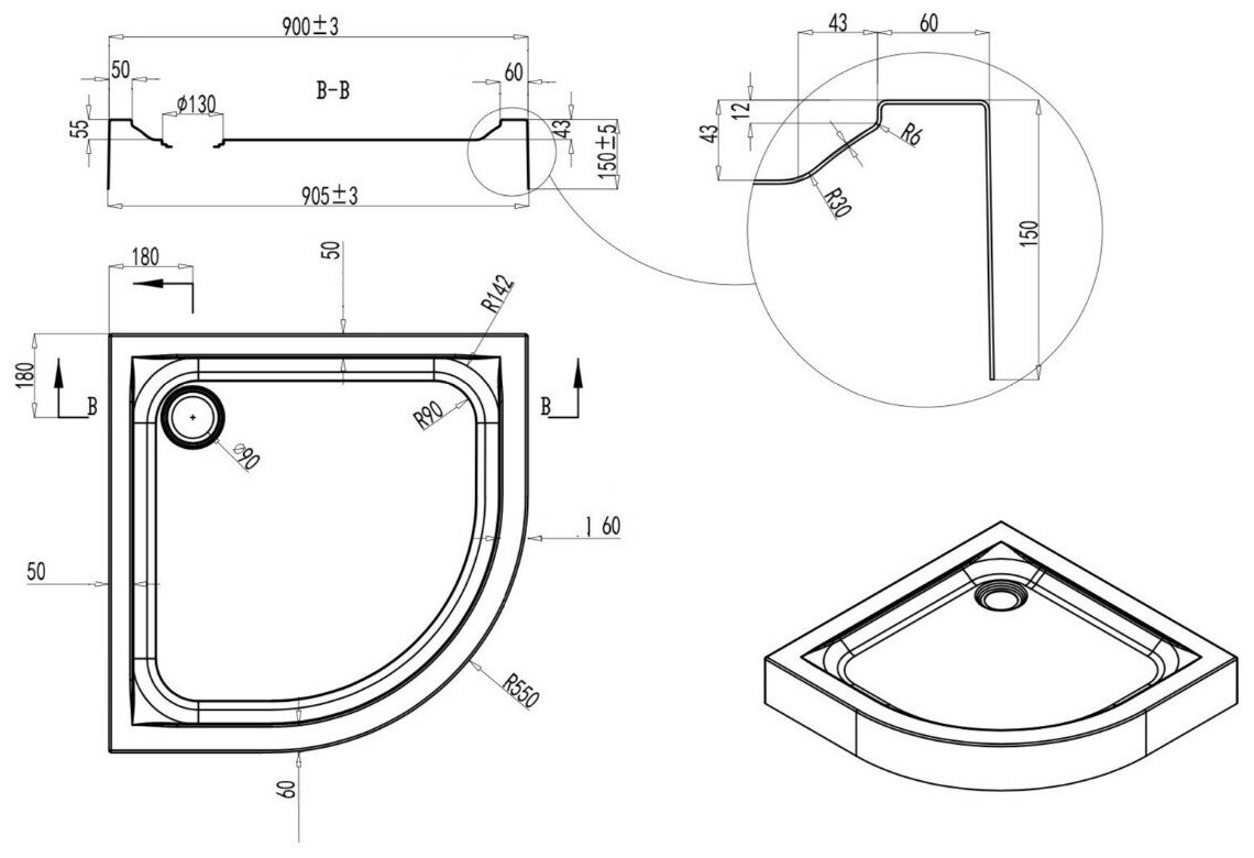 | Радиус поддона | R550 |