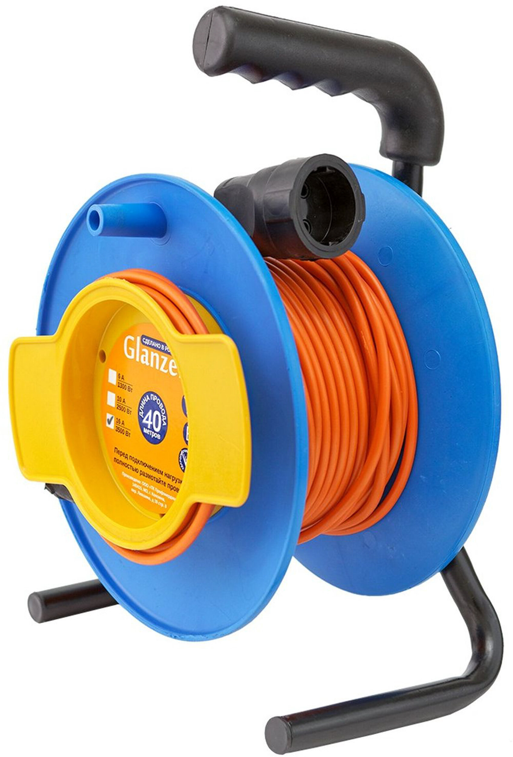 Силовой удлинитель на катушке Glanzen EC-40-003 с одним гнездом для подключения и трехжильным кабелем длиной 40 м обеспечивает работу строительной электротехники на удалении от питающей розетки как внутри помещений, так и на открытом воздухе.
