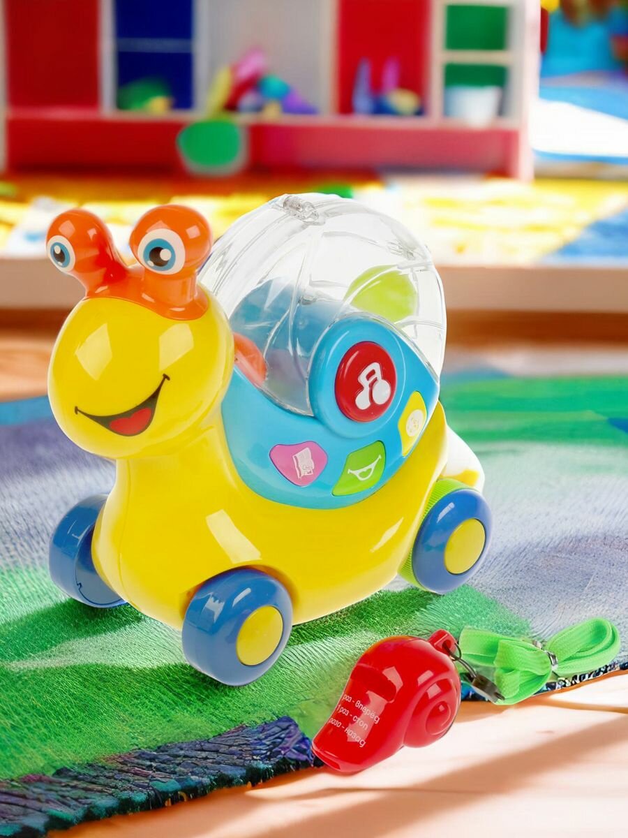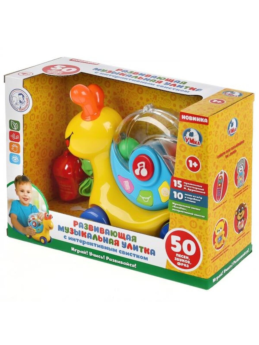 Ребенку понравится оригинальная игрушка в виде улитки. Весёлая музыкальная игрушка воспроизводит 50 песен, звуков и фраз.