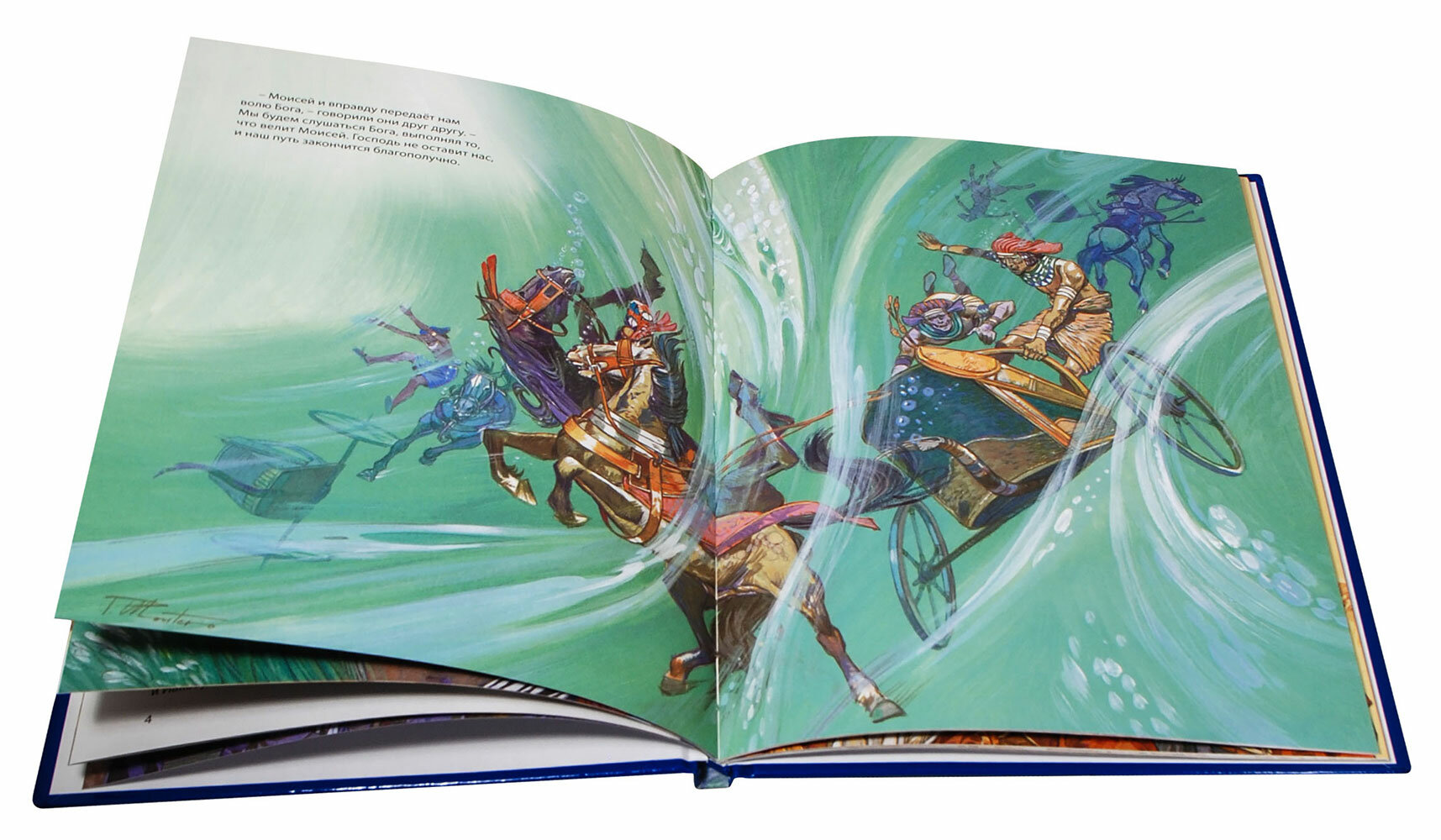 Исход. Моисей ведет свой народ. Эта книга том, как сынам Израилевым с Божией помощью и под водительством Моисея удалось уйти из египетского плена, пройти между стен из вод морских и отправиться в долгий путь в землю Ханаанскую.