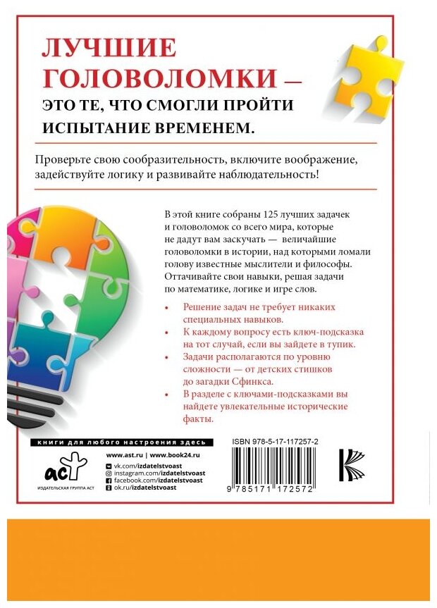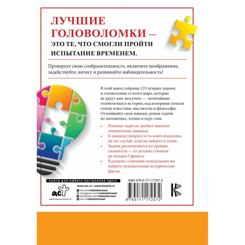 В этой книге собраны 125 лучших задачек и головоломок со всего мира, которые не дадут вам заскучать - величайшие головоломки в истории, над которыми ломали голову известные мыслители и философы. Оттачивайте свои навыки, решая задачи по математике, логике и игре слов.