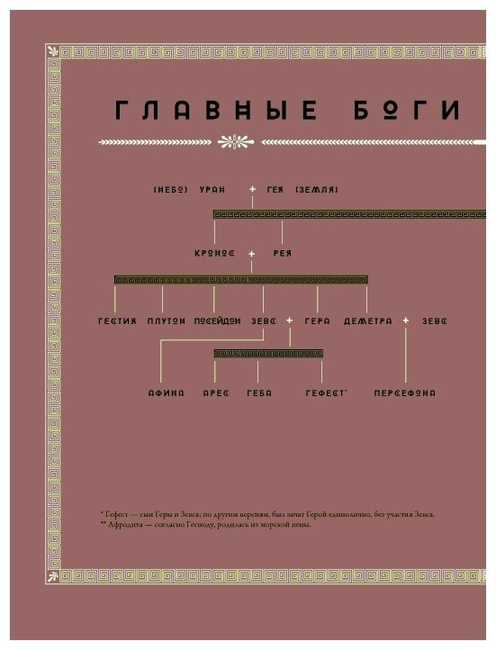- Книга удобно разделена на тематические главы, даны разные интерпретации мифов, есть генеалогические древа и стильные иллюстрации. Оформление издания в целом на очень высоком уровне.