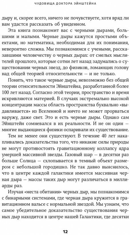 Изначально не собирался покупать данную книгу, но когда увидел, что это проект Дмитрий Зимина, купил не раздумывая и как оказывается не пожалел. Очень интересная и в достаточная понятная книга, автор регулярно приводит рисунки, что облегчает понимание, объем книги не очень большой, но в ней столько всего, чтобы описать черные дыре надо не один большой учебник, но для понимая темы в общих чертах этого будет достаточно.