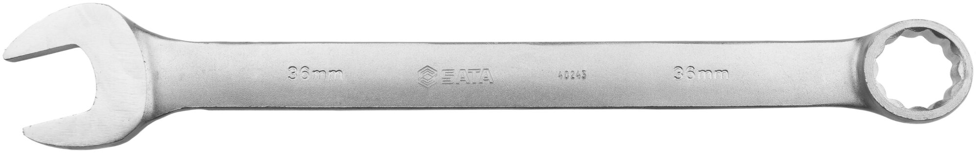 JUMBO COMBINATION WRENCH 36MM. Ключ комбинированный метрический, с пескоструйной обработкой. Размер 36 мм. Длина 500 мм. Ширина: (D1) накидного края 55.0 мм., (D2) рожкового края 55.0 мм. Форма SurfaceDrive накидного наконечника, снижает округление рёбер крепёжных элементов. Повышенная прочность накидного наконечника. Форма SurfaceDrivePlus рожкового наконечника обеспечивает более прочный захват крепёжного элемента, снижает округление рёбер крепёжных элементов