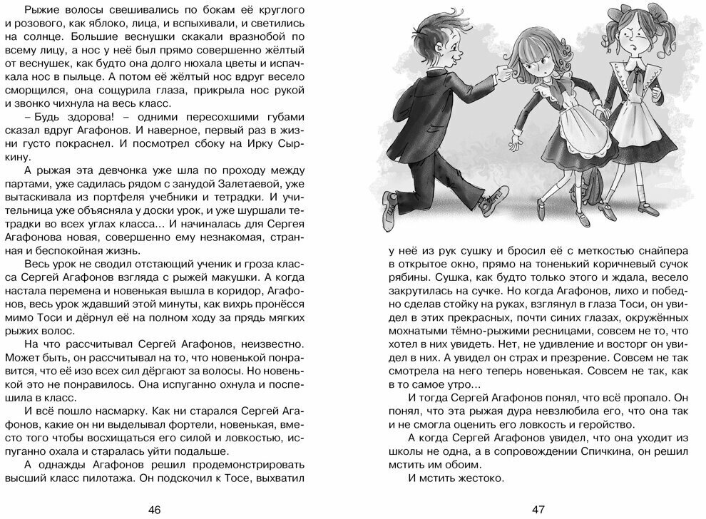 Я прочитала эту книгу в четвёртом классе, и она была идеальна для меня. Очень интересный сюжет, идеальная история для школьников младшего возраста, я хочу перечитать её, что бы ещё раз окунуться в детство, в приключения детей в школе. История про новенькую девочку и её отношения с одноклассникамм, как она находила общий язык с другими ребятами. В общем, советую. Издание бюджетное и качественное.