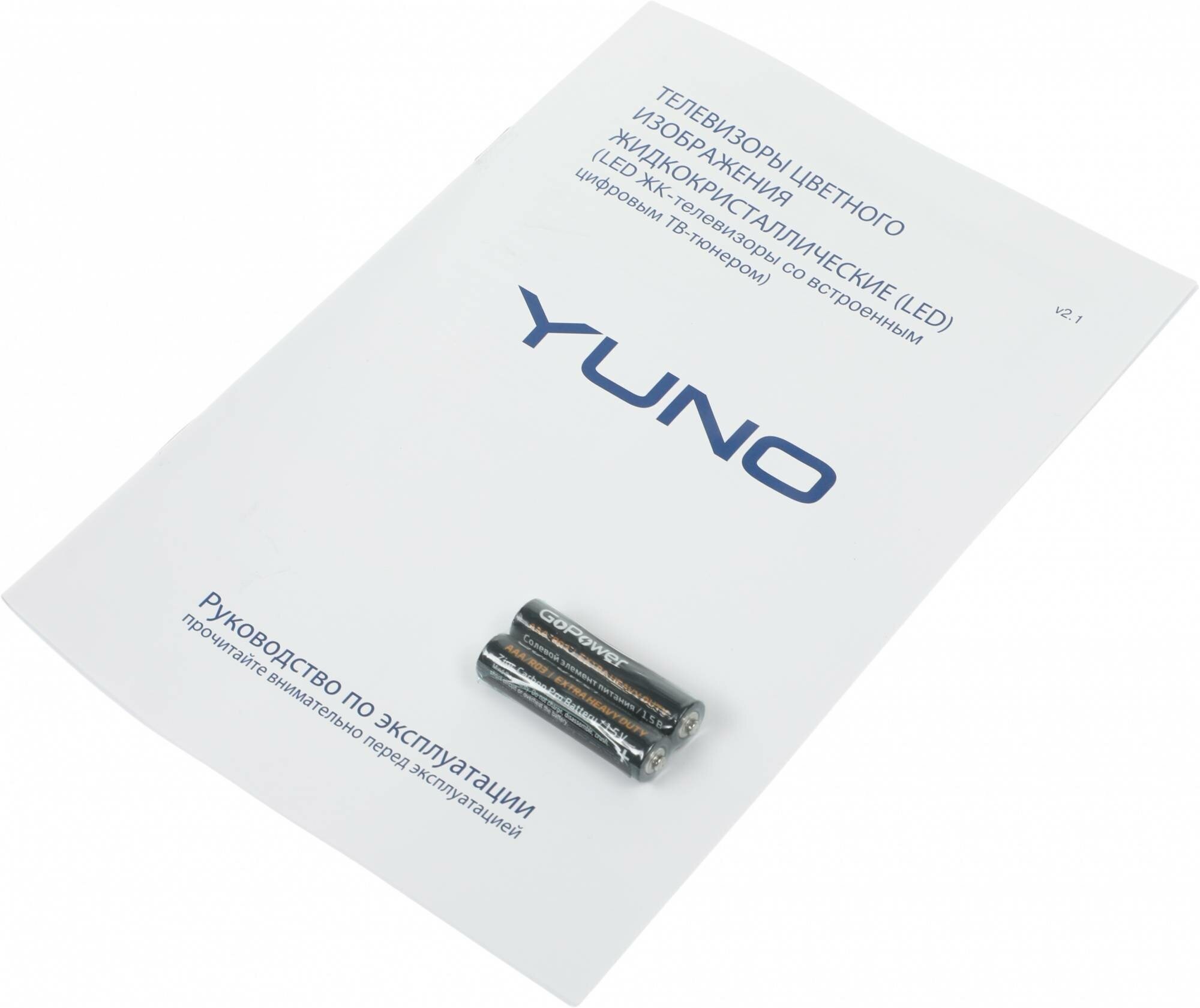 Телевизор Yuno черный, диагональ экрана 43" (108 см), разрешение FULL HD, частота обновления 50Hz, цифровой тюнер DVB-T2, DVB-C, ( (B))