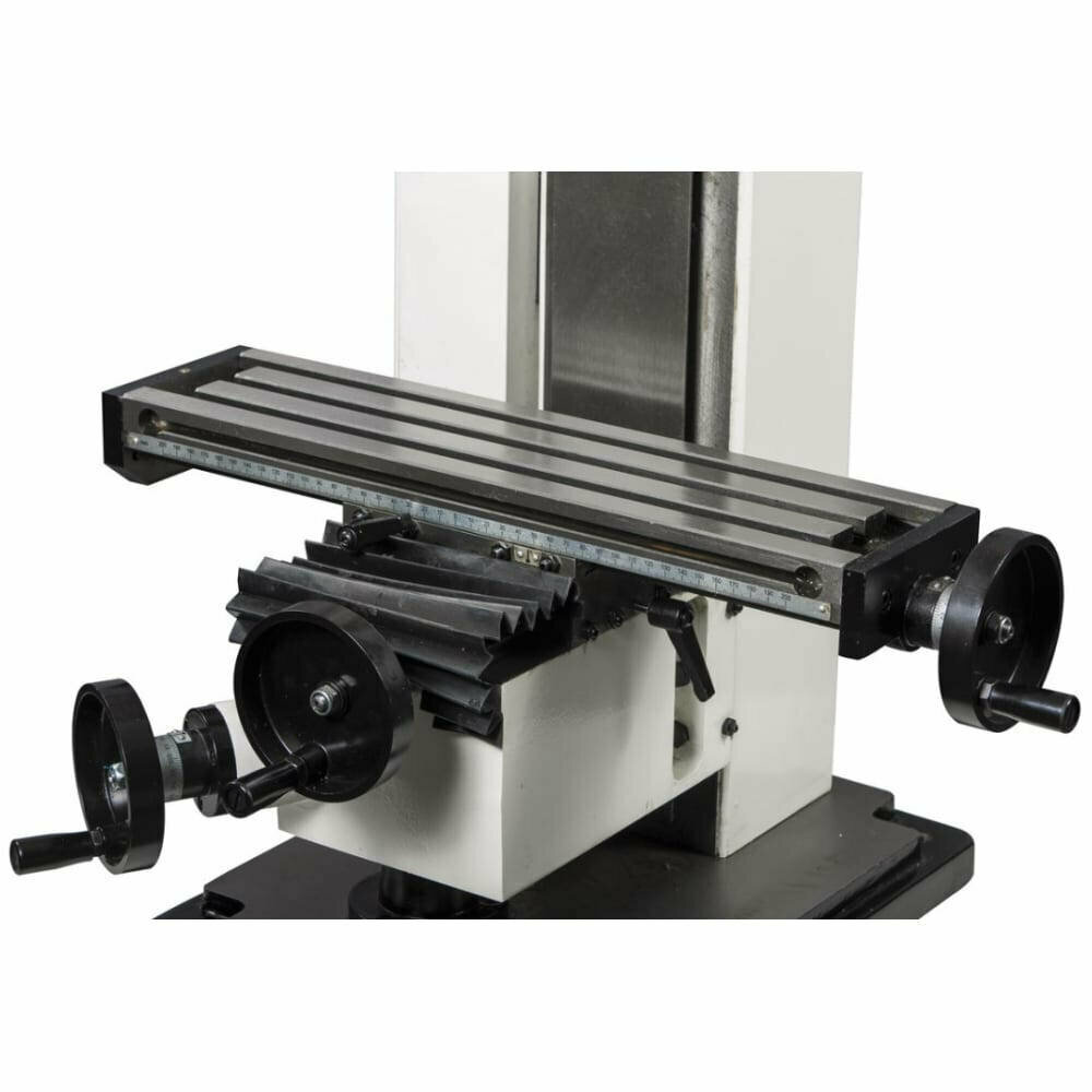 | Прочие особенности и свойства | Максимальный диаметр сверления сталь - 13 мм;,Максимальный диаметр сверления чугун - 15 мм;,Сверлильный патрон 1-13;,Шомпол М12;,Конус горизонтального шпинделя МК-3;,Диаметр вала под дисковую фрезу 16;,Ход стола по оси Z - 205 мм;,Количество Т-образных пазов стола - 3 шт.;,Мощность вертикального двигателя - 0.5 кВт;,Мощность горизонтального двигателя - 0.5 кВт;,Макс. диаметр дисковой фрезы 63 мм;,Горизонтальный шпиндель-стол 230 мм;,Перемещение стола по оси X/Y/Z 300 x 120 х 205 мм;,Возможность переустановки шпинделя в горизонтальное положение;,Корпус станка изготовлен из серого чугуна;,Движение рабочего стола по осям X,Y и Z;,Возможность поворота головы влево и вправо на 45 градусов;,Плавная регулировка частоты вращения;,Фрезерная головка без хода пиноли. |