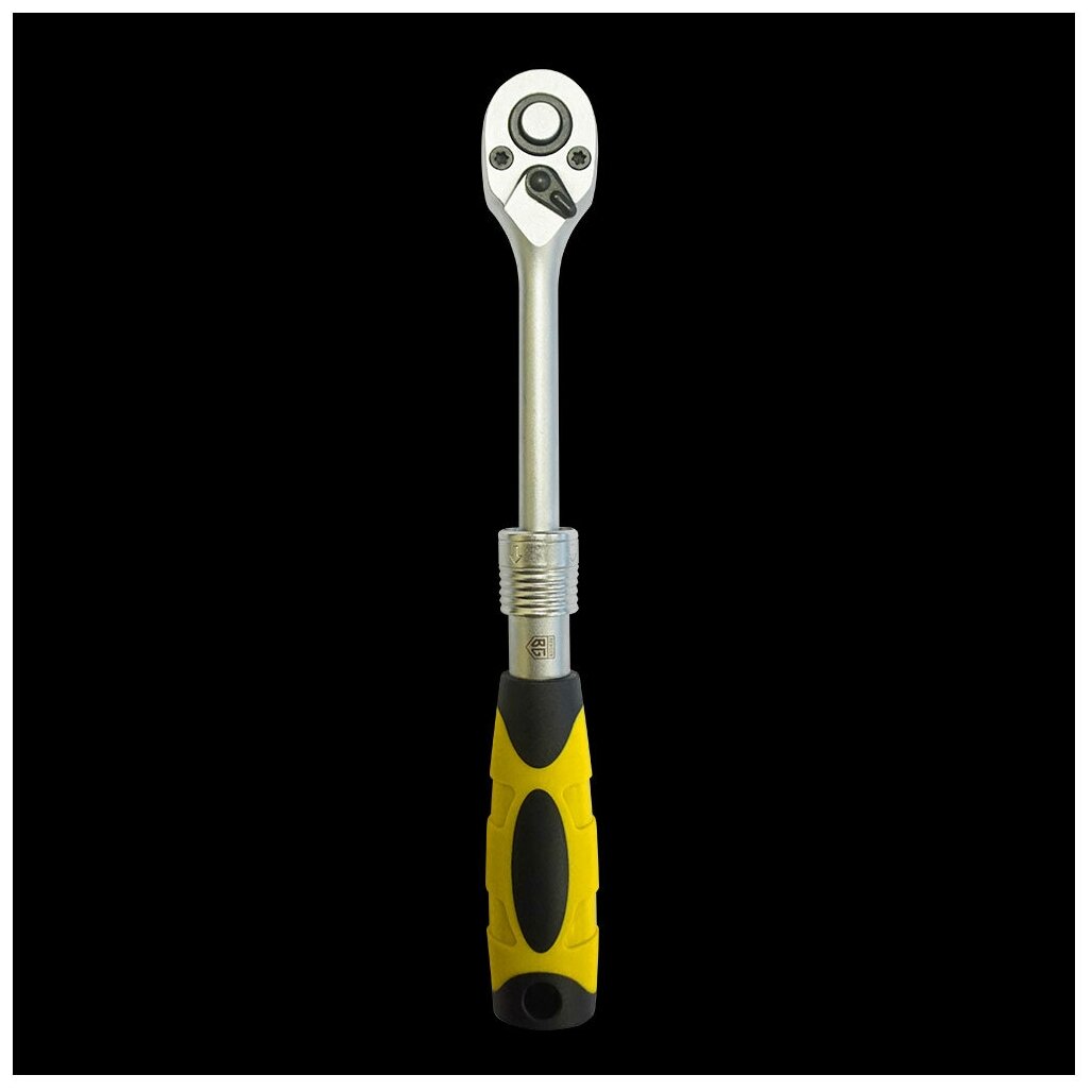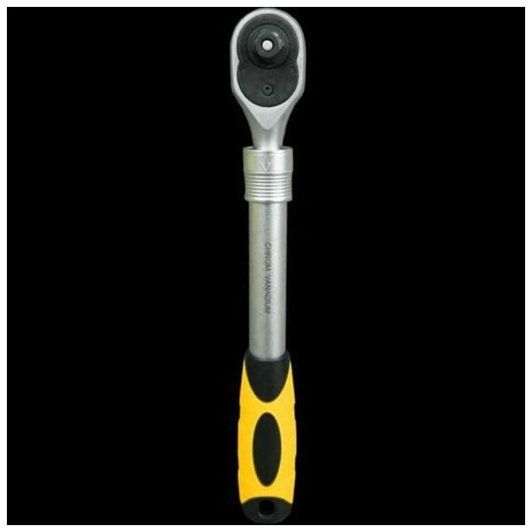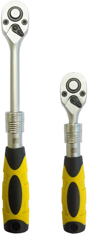 | Прочие особенности и свойства | Телескопическая трещотка с возможностью промежуточной фиксации в 3-ех положениях длины рукоятки (примерный шаг составляет 25 мм). Благодаря телескопическому удлинителю, трещотка позволяет снизить усилие при работе с крепежом, имеющий высокий момент фиксации. Шестерня с 72 зубцами, позволит использовать трещотку в ограниченном пространстве, так как угол перестановки рукоятки равен 5°,,Тип стали инструмента:CR-V (хром-ванадий),Рукоятка двухкомпонентная резино-пластиковая, стойкая к химическим составам,Шестерня с присоединительным квадратом из хром-молибденового сплава (CR-Mo),Привод:?”,Количество зубьев |