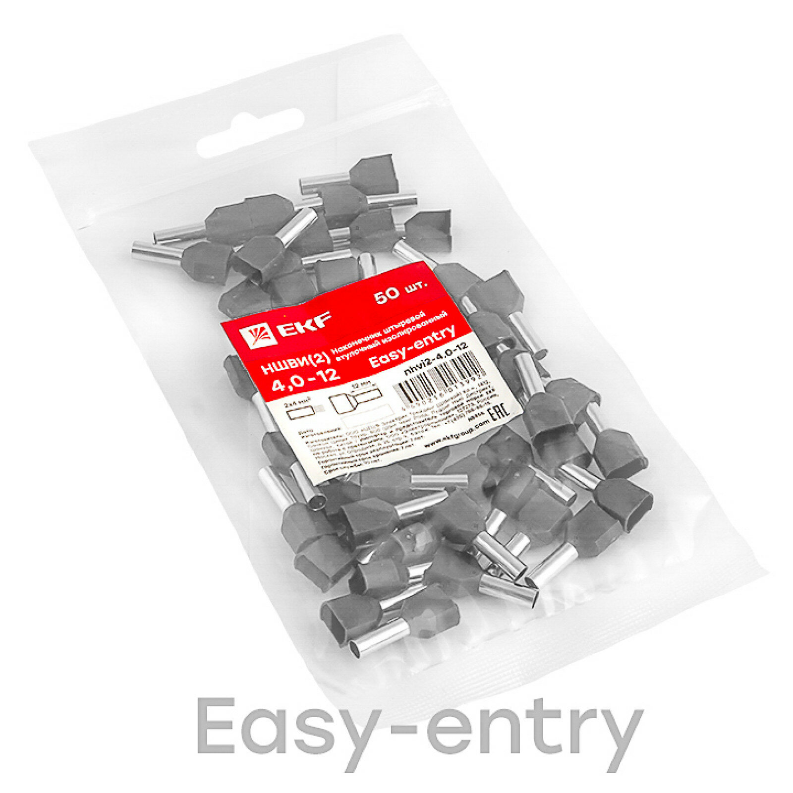 nhvi2-4.0-12 Наконечник штыревой втулочный изолированный НШвИ(2) 4-12 (50шт.) PROxima Упаковка (10 шт.) EKF