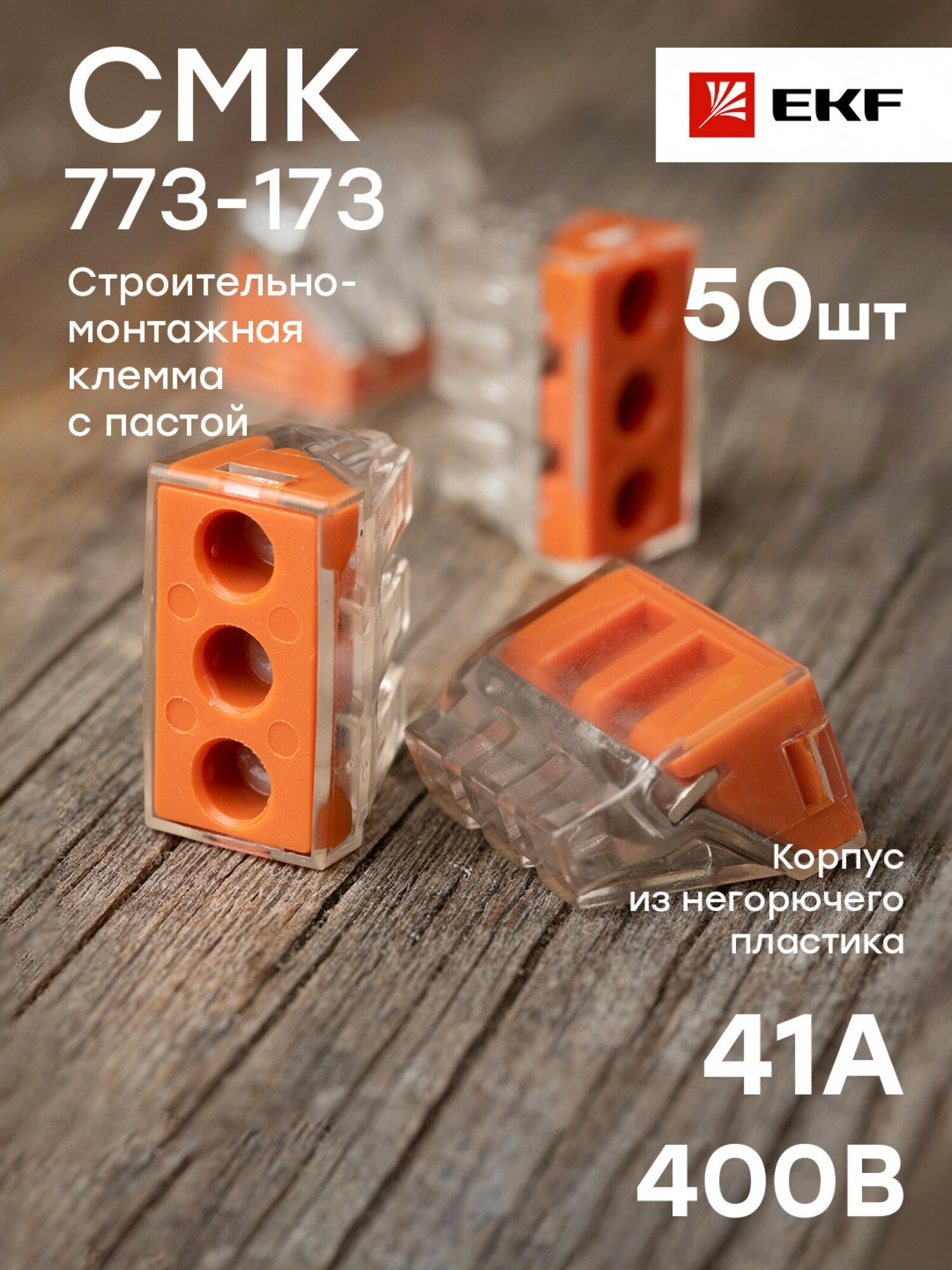 plc-smk-773-173 Клемма СМК 773-173 (с пастой) 3 отверстия 25-60 мм2 (уп.50шт.) PROxima EKF СМК 773-173 PROxima