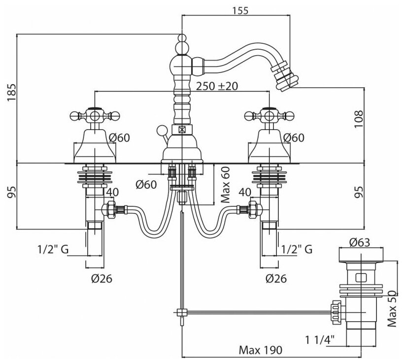 Крестообразные вентили позволяют точно регулировать температуру и напор воды.