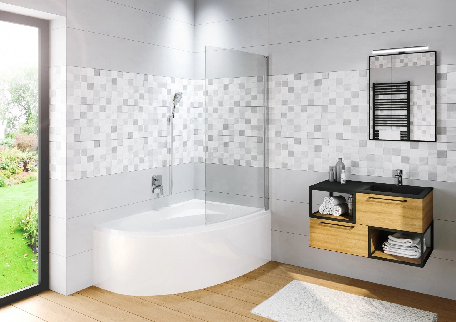 Шторка для ванной Riho Novik закалённого травмобезопасного стекла класса премиум с водоотталкивающим покрытием Riho Shield.