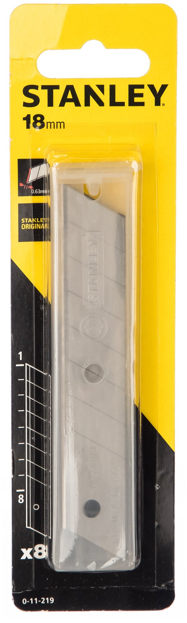 Лезвие сегментированное Stanley предназначено для строительных ножей. Состоит из семи сегментов. С помощью данного лезвия можно разрезать различные материалы: линолеум, ковровые покрытия, картон, бумагу, тонкий пластик и т.д.