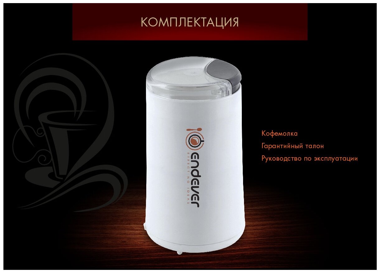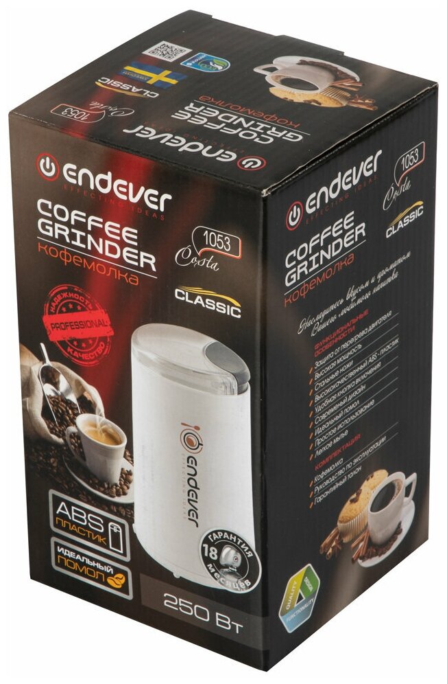 Кофе – практически самый любимый напиток! Мало кто представляет себе утро без чашечки ароматного кофе. И конечно же все большее количество людей являются приверженцами натуральных свежеприготовленных напитков. Свежемолотый кофе обладает глубоким вкусом и бодрящим ароматом, поднимающим настроение и дарящим энергию на весь день. Поэтому любителям кофе не обойтись без электрической кофемолки. Кофемолка от компании Endever относится к кофемолкам ножевого или ротационного типа.
