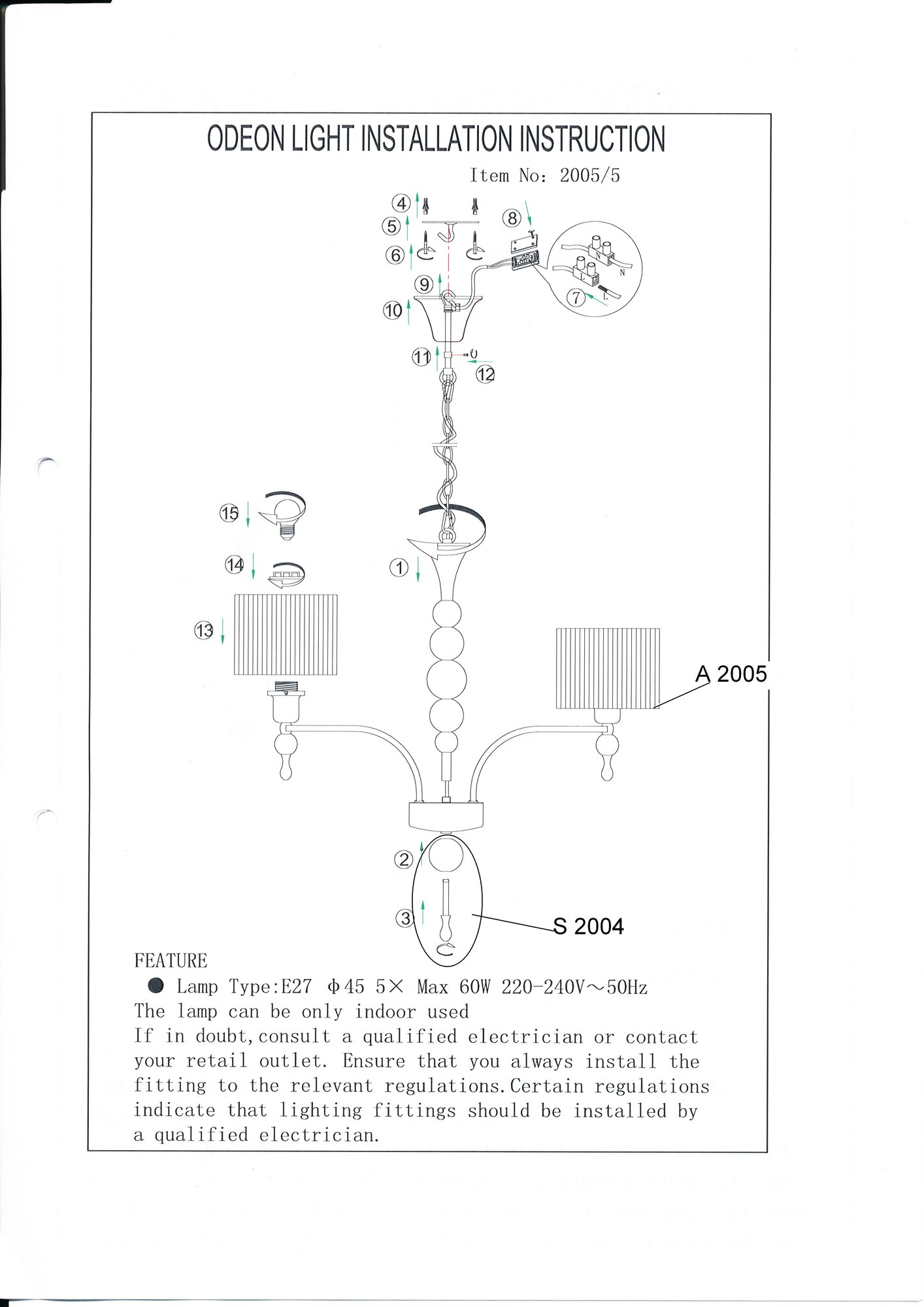 | Описание серии для сайта | Люстра 2005/5 линии Viga выполнена в стиле модерн. Покрытие металлического каркаса цвета хром, центральную часть и концы рожков украшают сферические стекла, абажуры выполнены из ткани белого цвета. Цоколь E27. Мощность 1*60W. Нет ламп в комплекте. |