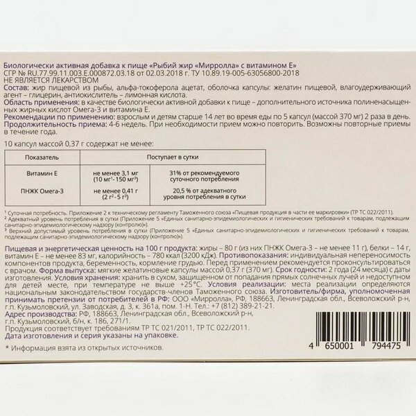 БАДы Рыбий жир и омега-3 ООО Мирролла »