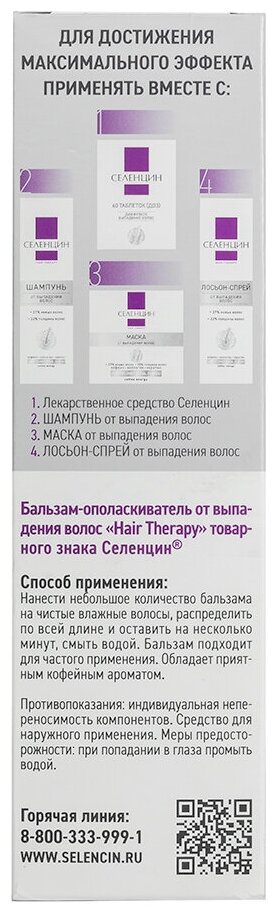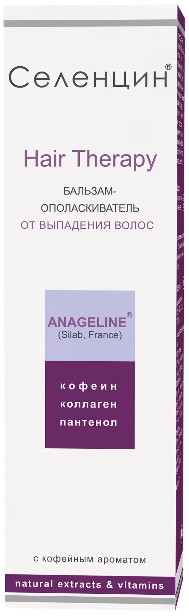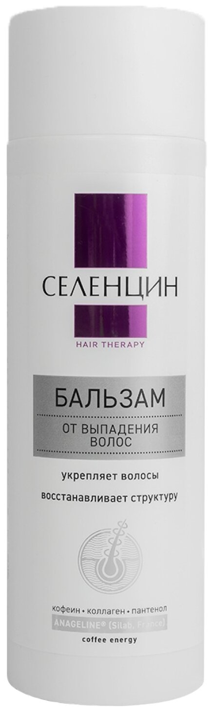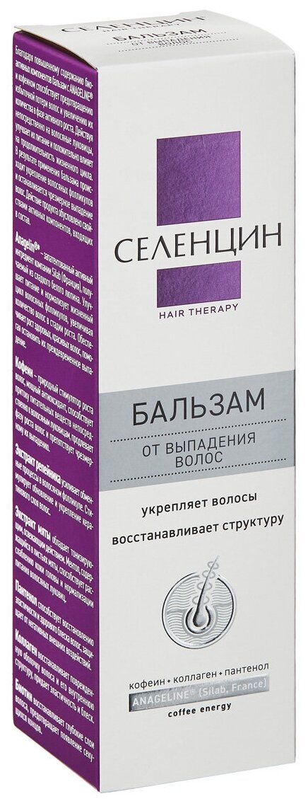 Бальзам для волос Селенцин Hair Therapy От выпадения волос - единственный бальзам, включающий в себя французский запатентованный ингредиент Anageline для эффективной борьбы с выпадением волос и мощный beauty-коктейль компонентов для восстановления красоты и здоровья волос.