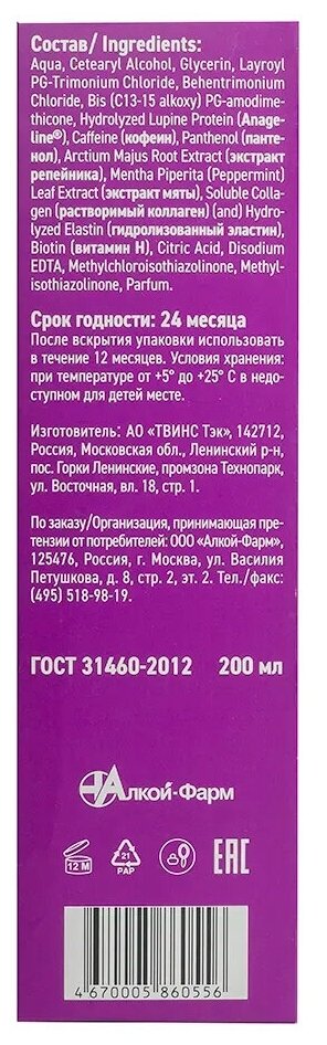 | Назначение | для ломких волос; для поврежденных волос; для тонких волос |