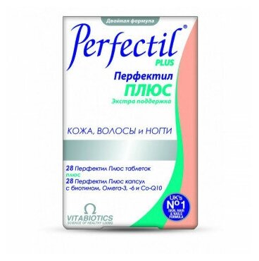Перфектил Плюс создан специалистами для обеспечения потребностей кожи, волос и ногтей в питании и экстра-поддержке кожи.В составе коэнзим Q10, Омега 3 ПНЖК, биотин, масла бурачника, экстракт виноградных зерен, витамины группы В и другие необходимые витамины и минералы.Компоненты в составе способствуют повышению упругости и эластичности кожи, защите от вредных свободных радикалов, максимальной защите кожи у женщин после 30 лет.Омега-3 и Омега-6 жирные кислоты питают кожу изнутри, поддерживают оптимальный уровень увлажненности и защищают от вредных факторов окружающей среды, сохраняя кожу эластичной и упругой.Уникальный состав с акцентом именно на восстановление и защиту кожи: витамины и минералы, коQ10, ликопин, лютеин, экстракт зерен винограда. Эти компоненты вызывают усиленное клеточное обновление.