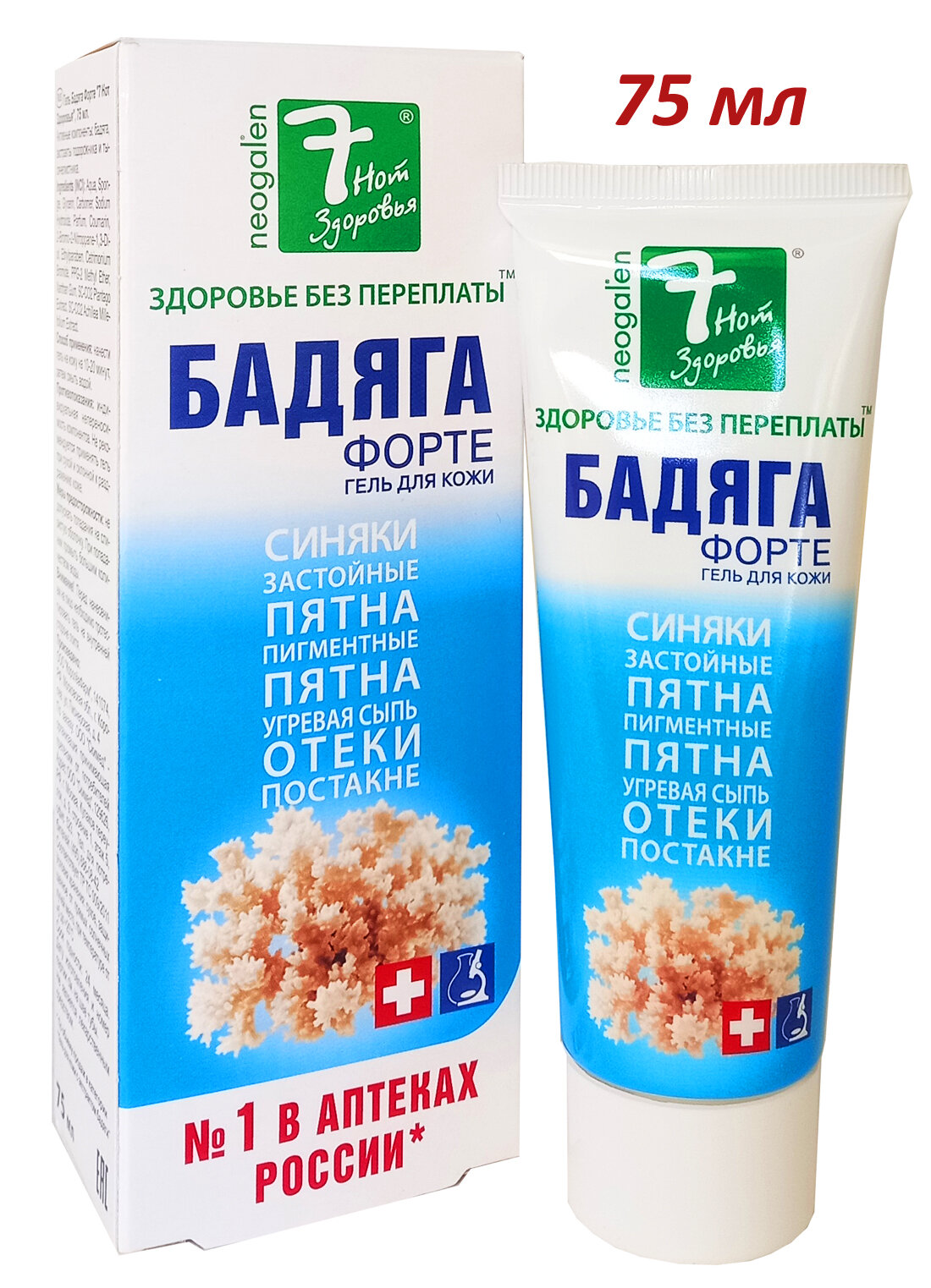 7 Нот здоровья Бадяга форте гель от синяков и пигментных пятен 75 мл Скимед ООО/Дина+ ООО (573191)