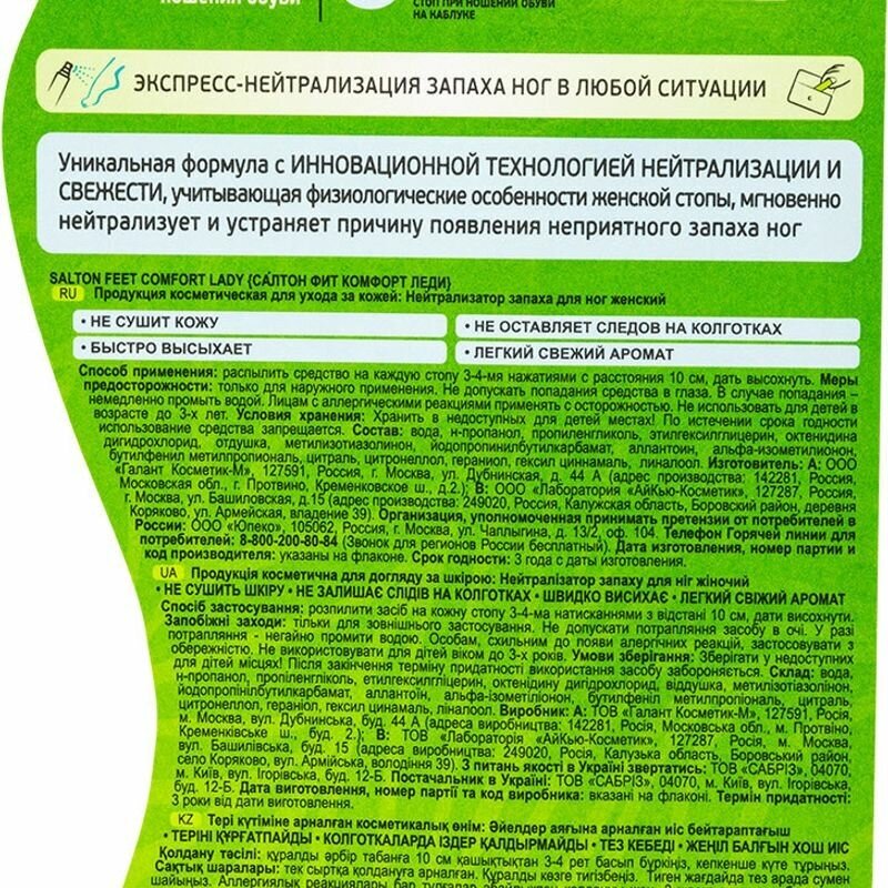 Нейтрализатор запаха Salton (Салтон) Feet Comfort Lady для ног для женщин 2-в-1 40 мл ООО Галант Косметик-М/Лаборатория АйКью-Косметик ООО (1092503)