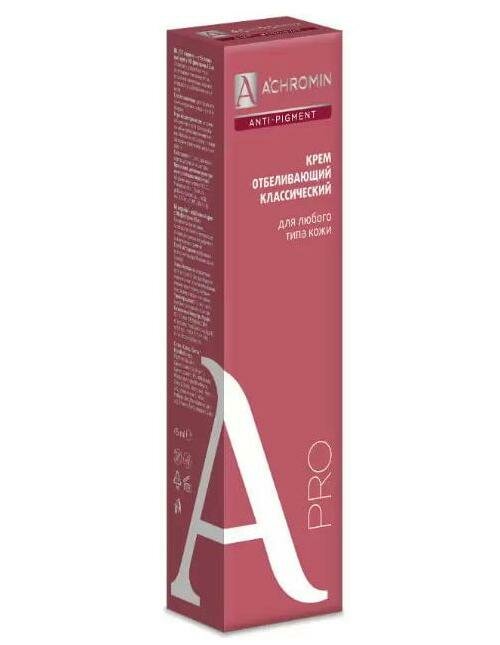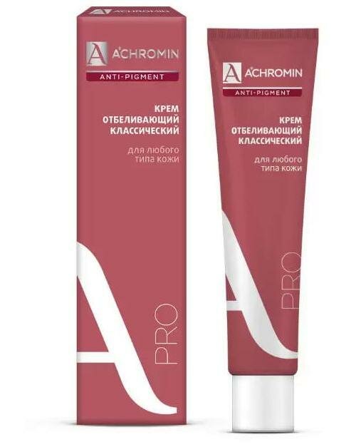 Ахромин предназначен для удаления и профилактики гиперпигментации веснушек, пятен после беременности, возрастных пигментных пятен, слишком темного загара. Используется для защиты кожи от вредного воздействия солнечных лучей.