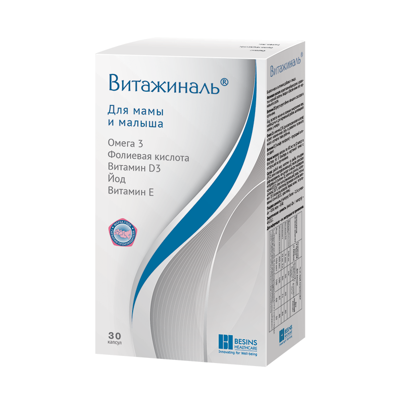 Базовый комплекс микронутриентов для здоровья мамы и малышаДополнительный источник незаменимых микронутриентов в период подготовки к беременности (за 1-2 месяца до планируемого зачатия), во время беременности, после родов и в период грудного вскармливания.Витажиналь — это биологически активная добавка к пище для женщин, планирующих беременность, во время беременности, после родов и кормящих грудью. Известно, что во время подготовки и в течение самой беременности и лактации организму женщины требуется большее количество витаминов и микроэлементов, недостаток которых может привести к негативным изменениям в организме матери или плода. В такой ситуации рациональным представляется их дополнительный прием не только во время беременности, но и при её планировании, и в период лактации. Прием сбалансированного комплекса жизненно необходимых элементов «Витажиналь» способствует восполнению уже имеющегося дефицита необходимых составляющих здорового питания, что благоприятно отражается как на здоровье женщины, так и на развитии плода.