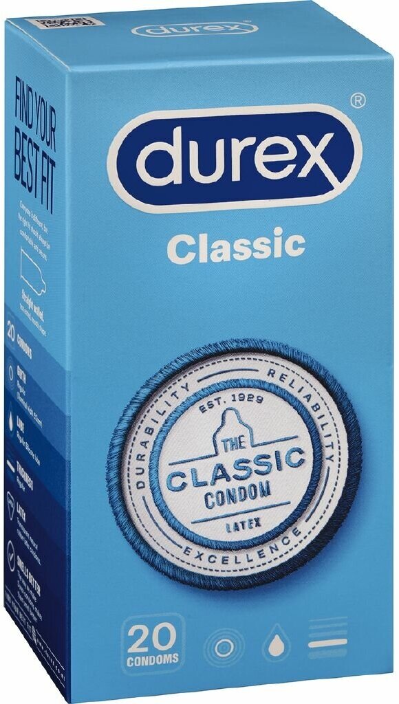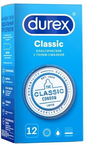 Классический - не значит скучный! Презервативы Durex Classic - простые презервативы со смазкой . Благодаря технологии производства не имеют неприятного запаха. Все предусмотрено для того, чтобы вы могли расслабиться и наслаждаться безопасным сексом. Гладкие, бесцветные, из натурального латекса. Номинальные размеры: длина 195 мм, ширина 56 мм. Дерматологически тестированы. 100% проверены электроникой.
