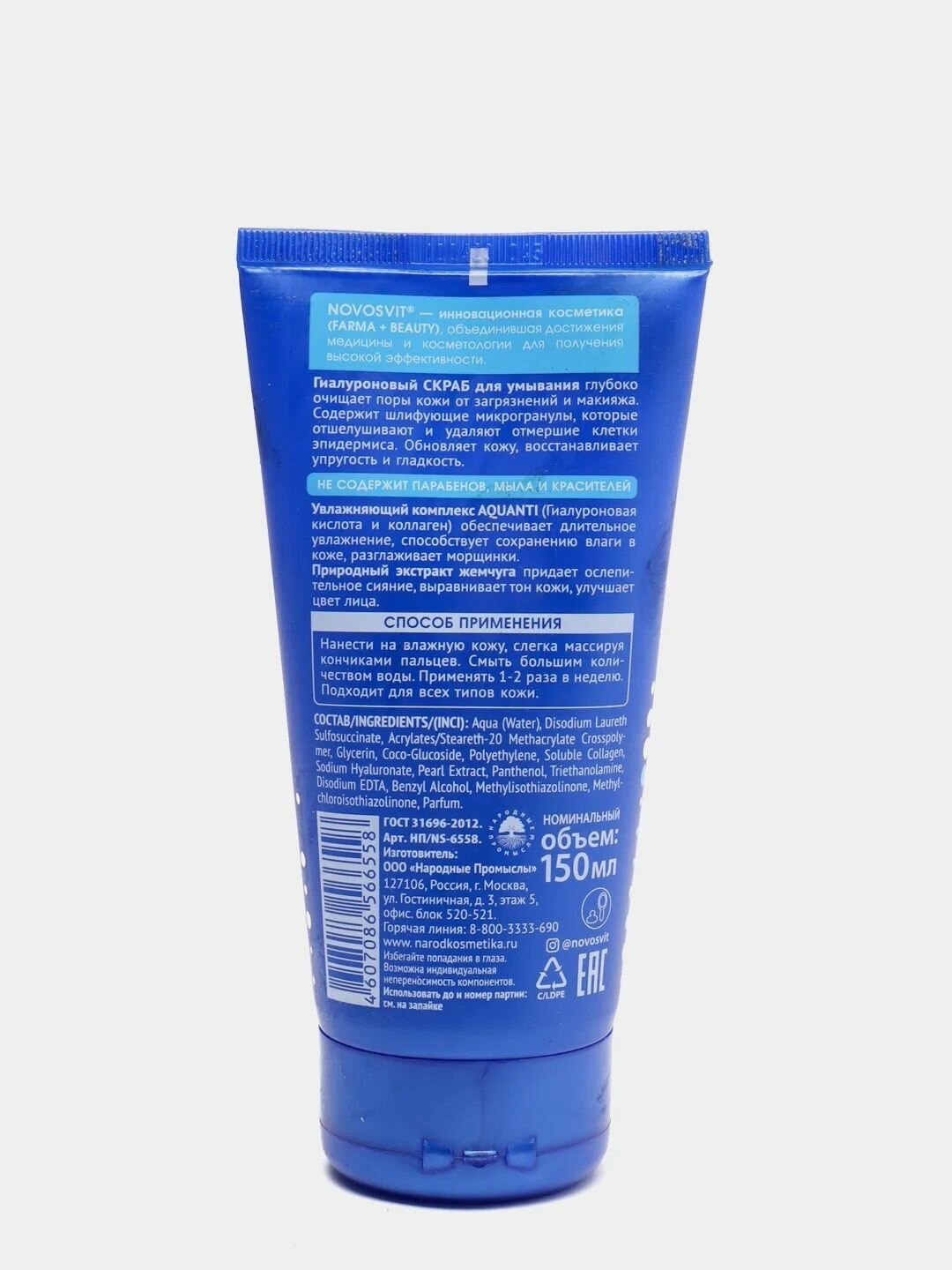 Гель-скраб NOVOSVIT (Новосвит) для умывания Гиалуроновый с жемчугом 150 мл Народные Промыслы ООО (573297)