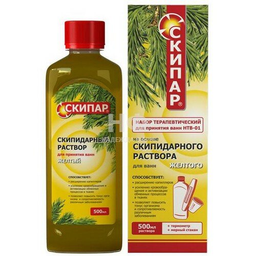 | Полное наименование | Скипар Раствор желтый Набор терапевтический для ванн, 500 мл |