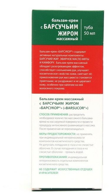 Барсукор бальзам крем с барсучим жиром массажный 50 мл Р.Косметик /Дина+ (570844)