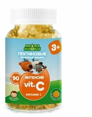 Пектиновые желейные жевательные пастилки Ми-ми-мишки с витамином С в форме мишек. Витамин С обладает иммуностимулирующим действием, способствует повышению сопротивляемости организма к инфекциям и вирусам, участвует в синтезе компонентов костно-хрящевой ткани. Способ применения: детям 3-7 лет по 1 жевательной пастилке в день, детям 7-14 лет по 1 жевательной пастилке 2 раза в день во время еды. Продолжительность приема -1 месяц. При необходимости прием можно повторять в течение года.